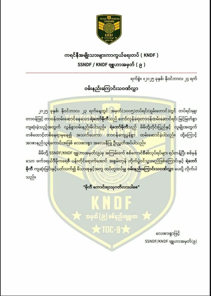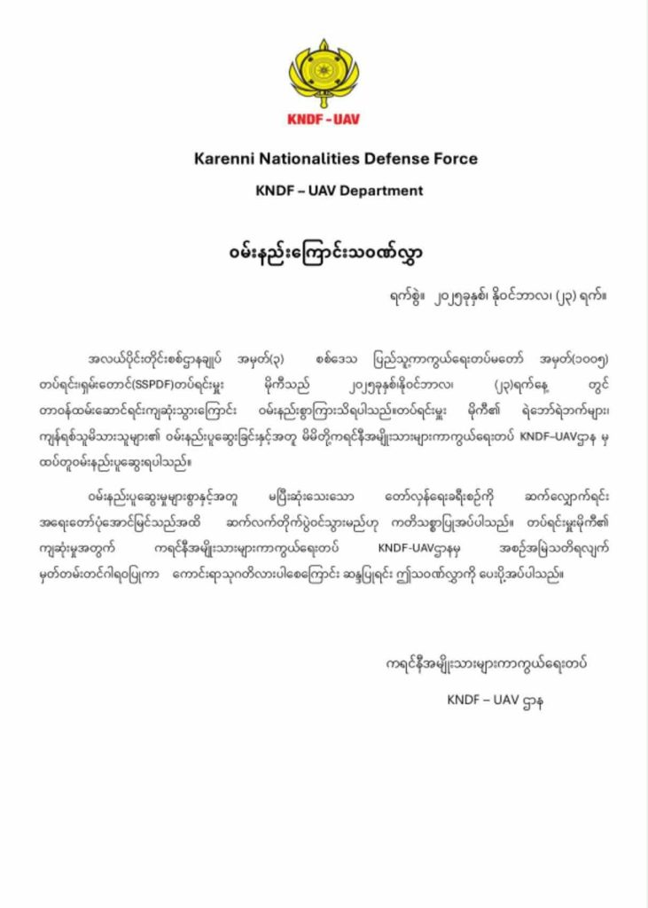 ဒီလိုမျိုး NUG ရဲ့ တပ်ရင်းမှူး ကားမှောက်ပြီး ပွဲချင်းပြီးသေသွားတာကို ကရင်လက်နက်ကိုင်တွေက သူရဲကောင်းဇာနည်အဖြစ် မှတ်တမ်းတင်တယ်လို့လည်း စာပို့တာကို SSPDF က ဖော်ပြနေပါတယ်။