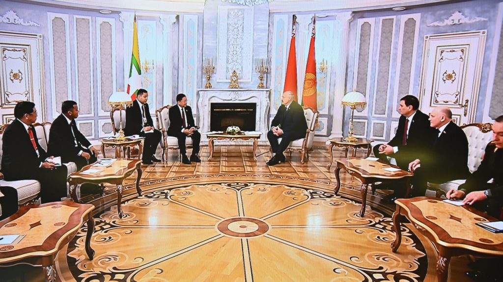 ယာယီသမ္မတ ဗိုလ်ချုပ်မှူးကြီး မင်းအောင်လှိုင်သည် ရုရှားဖက်ဒရေးရှင်းနိုင်ငံသမ္မတ မစ္စတာ ဗလာဒီမာပူတင်၏ ဖိတ်ကြားချက်အရ ယခုနှစ် မတ်လ ၃ ရက်နေ့မှ ၆ ရက်နေ့အထိ ရုရှားဖက်ဒရေးရှင်းနိုင်ငံသို့ နိုင်ငံတော်အဆင့် တရားဝင်ချစ်ကြည်ရေးခရီး သွားရောက်ခဲ့ပြီး ရုရှားသမ္မတအပါအဝင် ရုရှားအစိုးရ ထိပ်ပိုင်းတာဝန်ရှိသူများနှင့် တွေ့ဆုံကာ နားလည်မှုစာချွန်လွှာ ၁၀ ခု လက်မှတ်ရေးထိုးပြီးနောက် ဘယ်လာရုစ်နိုင်ငံ သမ္မတ မစ္စတာ လူကာရှန်ကို၏ ဖိတ်ကြားချက်အရ နိုင်ငံတော်အဆင့်(Offical State Visit) အဖြစ် ဘယ်လာရုစ်သမ္မတနိုင်ငံ၊ မင့်စ်မြို့သို့ မတ်လ ၇ ရက်နေ့တွင် သွားရောက်ခဲ့သေးသည်။