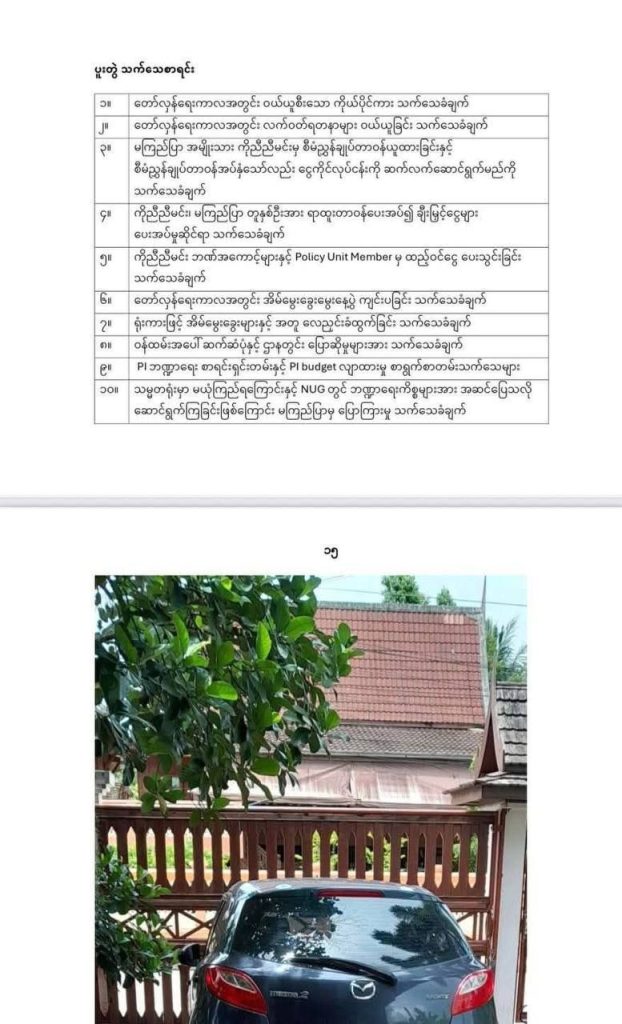 NUG ပြည်ထောင်စုဝန်ကြီးချုပ်ရုံး အမြဲတမ်းအတွင်းဝန်ကြည်ပြာနဲ့ လင်ဖြစ်သူ ကိုညီညီမင်းတို့မိသားစုဟာ ဝန်ကြီးချုပ်ရုံးမှာ အမြဲတမ်းအတွင်းဝန်၊ ညွှန်ကြားရေးမှူးချုပ်၊ ဦးစီးအရာရှိ စတဲ့ ရာထူးကြီးတွေယူပြီး ပြည်သူ့အလှူငွေကို မိသားစုစီးပွားရေးသဖွယ် စည်းစိမ်ခံ သုံးစွဲတာ၊ ဝန်ထမ်းတွေအပေါ်နဲ့ NUG အစိုးရအတွင်း မလျော်ဩဇာသုံး လွှမ်းမိုးခြယ်လှယ် ဆောင်ရွက်တာ၊ လူ့အခွင့်အရေးချိုးဖောက်တာ၊ CDM နဲ့ NUG ဝန်ထမ်းတွေကို သူတို့မွေးထားတဲ့ ခွေးလောက်တောင် အလေးမထားဘဲ ဖိနှိပ်တာ စတာတွေကြောင့် ဖိနှိပ်ခံရတဲ့ အလုပ်ထွက်ခဲ့ရတဲ့ NUG ရုံးဝန်ထမ်းဟောင်း ၁၉ ဦးကပဲ နိုဝင်ဘာ ၁၉ ရက်မှာ တိုင်စာပို့ခဲ့တာပါ။