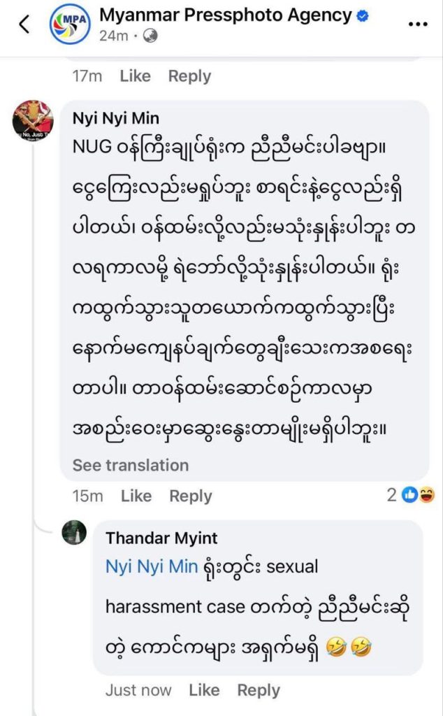 NUG ဝန်ကြီးချုပ်ရုံးက ဝန်ထမ်းတွေကို ခွေးထက်တောင် နှိမ်ထားတဲ့ အမြဲတမ်းအတွင်းဝန် ကြည်ပြာတို့လင်မယားကို တိုင်ကြားထားတဲ့ အမှုနဲ့ ပတ်သက်ပြီး စုံစမ်းစစ်ဆေးရေး အဖွဲ့ ဖွဲ့စည်း စစ်ဆေးနေတယ်လို့ NUG က ထုတ်ပြန်ပါတယ်။