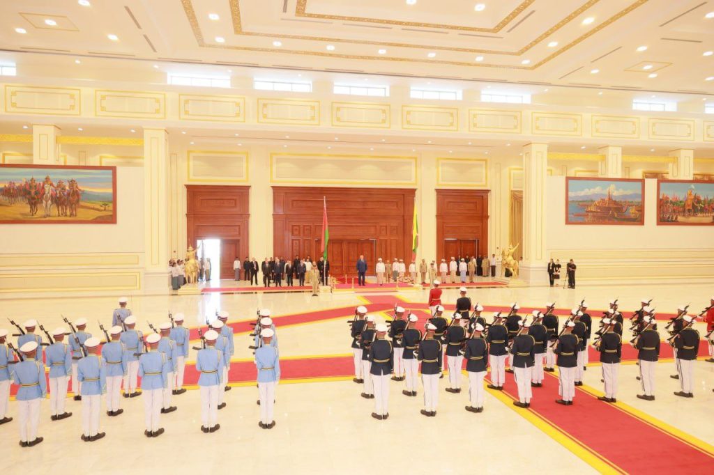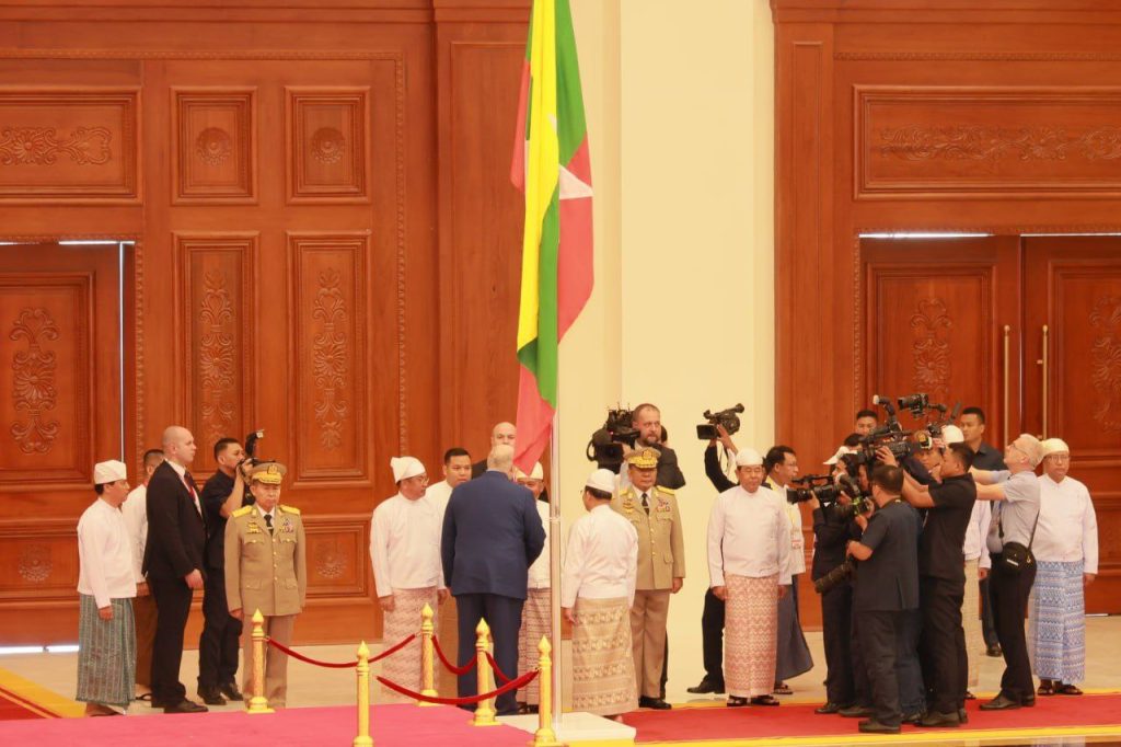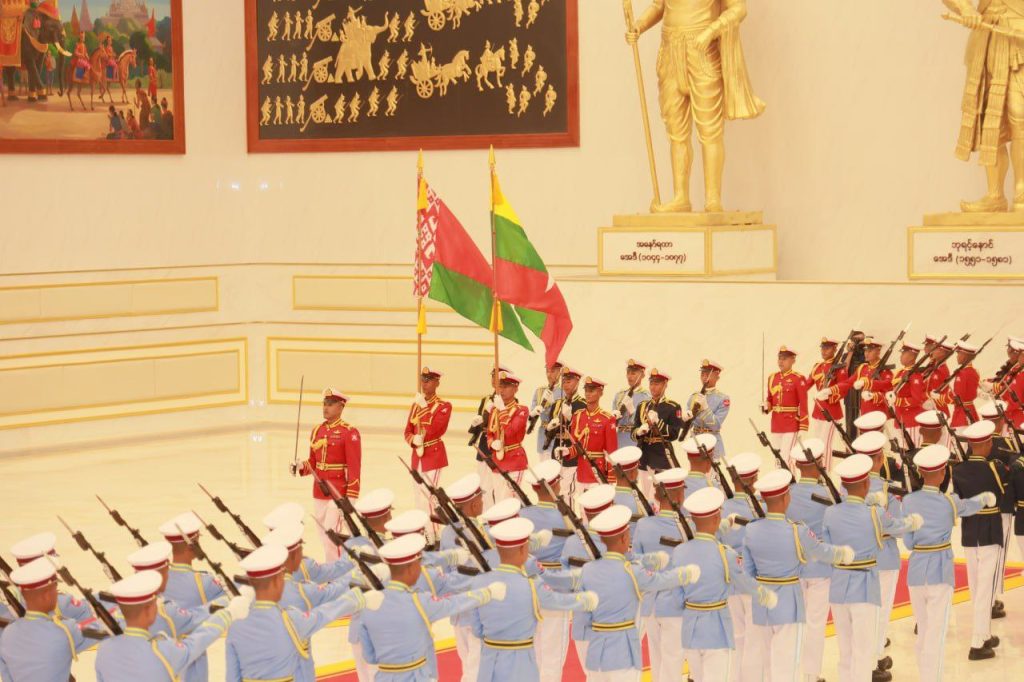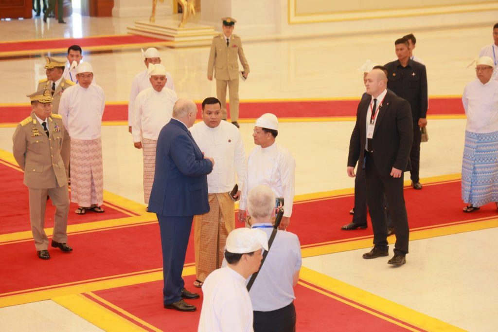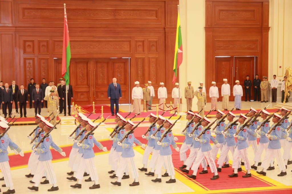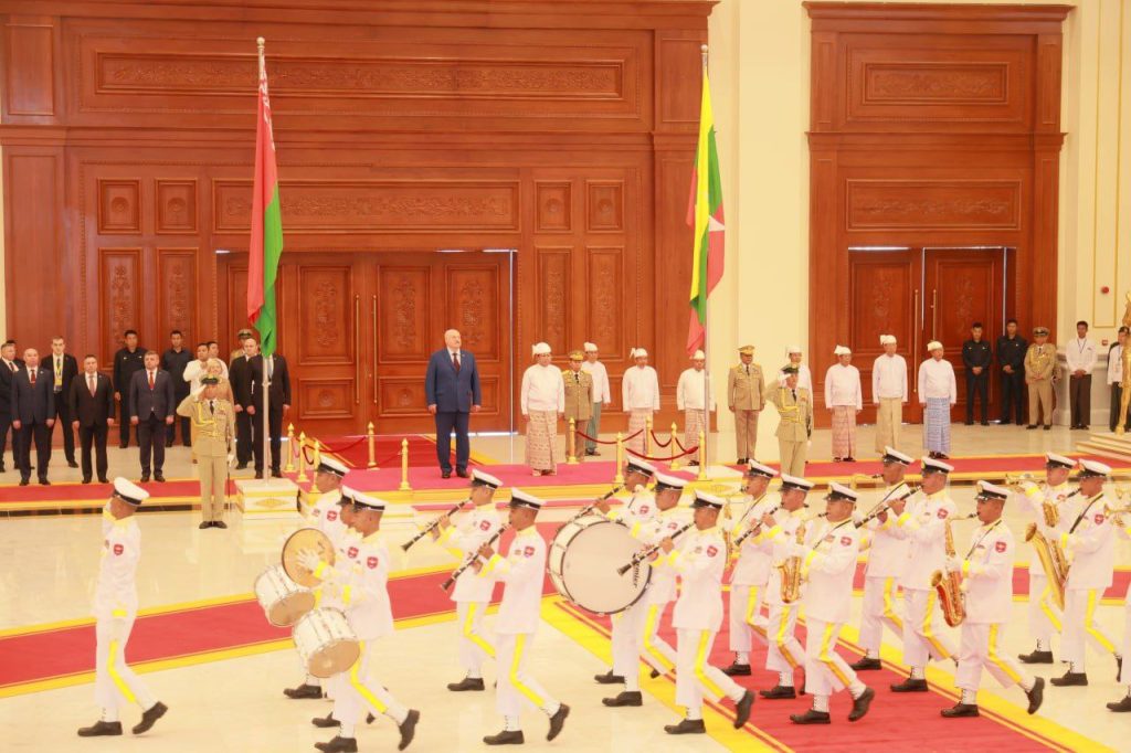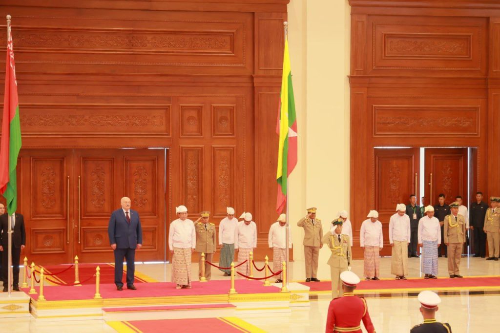 မြန်မာနိုင်ငံတော် ယာယီသမ္မတ၊ နိုင်ငံတော်လုံခြုံရေးနှင့် အေးချမ်းသာယာရေးကော်မရှင် ဥက္ကဋ္ဌ၊ ဗိုလ်ချုပ်မှူးကြီးမင်းအောင်လှိုင်သည် ယနေ့ နိုဝင်ဘာ ၂၈ ရက် နံနက်ပိုင်းက နေပြည်တော်ရှိ သမ္မတအိမ်တော်သို့ ရောက်ရှိလာသည့် ဘယ်လာရုစ်နိုင်ငံသမ္မတ Η.Ε. Mr. Aleksandr LUKASHENKO အား နိုင်ငံတော်ဂုဏ်ပြုတပ်ဖွဲမှ နိုင်ငံ့ခေါင်းဆောင်များအား ကြိုဆိုသည့်အစဥ်အလာနှင့်အညီ ဂုဏ်ပြုကြိုဆိုခဲ့သည်။