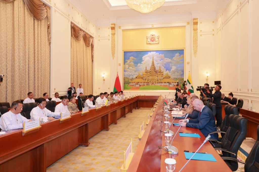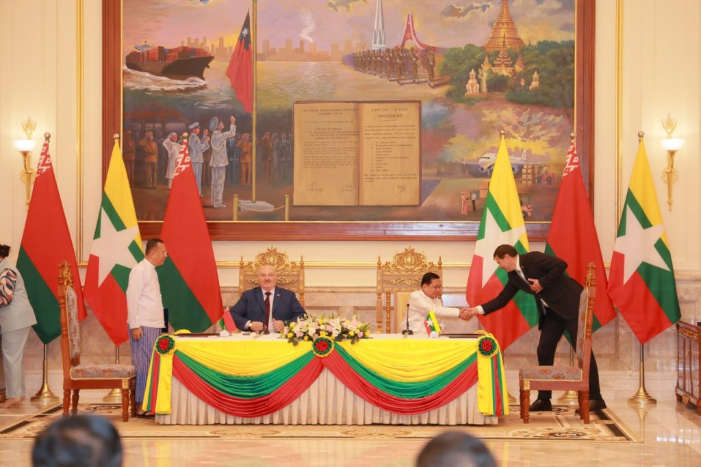 မြန်မာနိုင်ငံတော်ယာယီသမ္မတ၊ နိုင်ငံတော်လုံခြုံရေးနှင့် အေးချမ်းသာယာရေးကော်မရှင် ဥက္ကဋ္ဌ ဗိုလ်ချုပ်မှူးကြီးမင်းအောင်လှိုင်နှင့် ဘယ်လာရုစ်သမ္မတနိုင်ငံ သမ္မတ မစ္စတာ အလက်ဇန္ဒား လူကာရှန်ကိုတို့ ယနေ့ တွေ့ဆုံဆွေးနွေးမှုအတွင်း ကာကွယ်ရေး၊ စိုက်ပျိုးရေး၊ မွေးမြူရေး၊ ပညာရေး၊ သိပ္ပံနှင့်နည်းပညာ၊ ကျန်းမာရေး၊ အားကစားနှင့်ခရီးသွားကဏ္ဍများတွင် ပူးပေါင်းဆောင်ရွက်မည့် အခြေအနေများကို ကျယ်ကျယ်ပြန့်ပြန့် ဆွေးနွေးနိုင်ခဲ့ကြောင်း မြန်မာနိုင်ငံတော်ယာယီသမ္မတက ပြောကြားသည်။