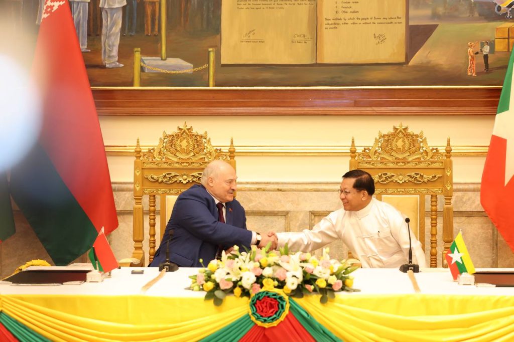 မြန်မာ-ဘယ်လာရုစ် နှစ်နိုင်ငံအကြား သိပ္ပံနှင့်နည်းပညာ၊ အကောက်ခွန်၊ ပို့ကုန်ချေးငွေမူဘောင်၊ ကုန်သွယ်ရေး၊ စီးပွားရေးတို့အတွက် နားလည်မှုစာချွန်လွှာများကို နိုင်ငံတော်ယာယီသမ္မတ နိုင်ငံတော်လုံခြုံရေးနှင့်အေးချမ်းသာယာရေးကော်မရှင်ဥက္ကဋ္ဌနှင့် ဘယ်လာရုစ်သမ္မတတို့ ရှေ့မှောက်တွင် နှစ်နိုင်ငံတာဝန်ရှိသူများက ယနေ့ လက်မှတ်ရေးထိုးကြပြီး စာချွန်လွှာများကို အပြန်အလှန်လဲလှယ်ကြသည်။