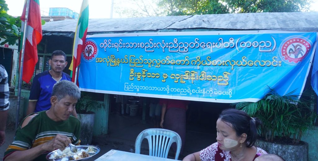 ရန်ကုန်မြို့၊ အလုံမြို့နယ်၊ အလုံထော်လီကွေ့အနီး စည်ပင်သာယာဝင်းထဲက သန့်ရှင်းရေးလုပ်သားတွေနေထိုင်တဲ့ လိုင်းခန်းတွေဆီမှာ တိုင်းရင်းသားစည်းလုံးညီညွတ်ရေးပါတီ၊ အလုံမြို့နယ် ပြည်သူ့လွှတ်တော်ကိုယ်စားလှယ်လောင်း ဦးခွန်သာက စတုဒိသာအလှူကို မနေ့က နိုဝင်ဘာ ၂၈ ရက် ညနေပိုင်းက ပြုလုပ်ခဲ့ပါတယ်။