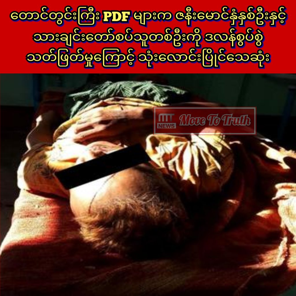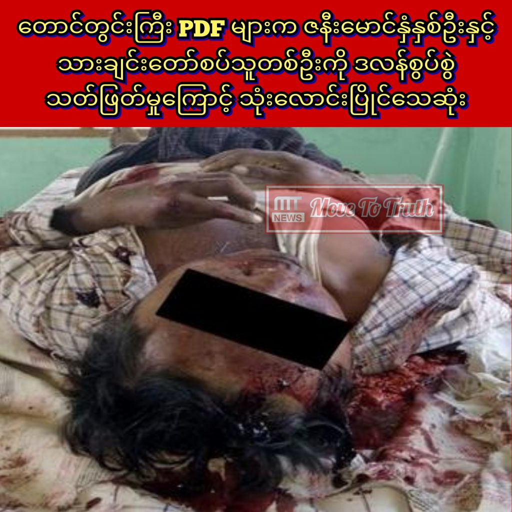 တောင်တွင်းကြီး PDF များက ဇနီးမောင်နှံနှစ်ဦးနှင့် သားချင်းတော်စပ်သူတစ်ဦးကို ဒလန်ဟု စွပ်စွဲကာ ဦးခေါင်းများကို သေနတ်ဖြင့် ပစ်ခတ် သတ်ဖြတ်မှုကြောင့် သုံးလောင်းပြိုင်သေဆုံးခဲ့မှု နိုဝင်ဘာ ၂၉ ရက်နေ့က ဖြစ်ပွားခဲ့ကြောင်း သိရသည်။