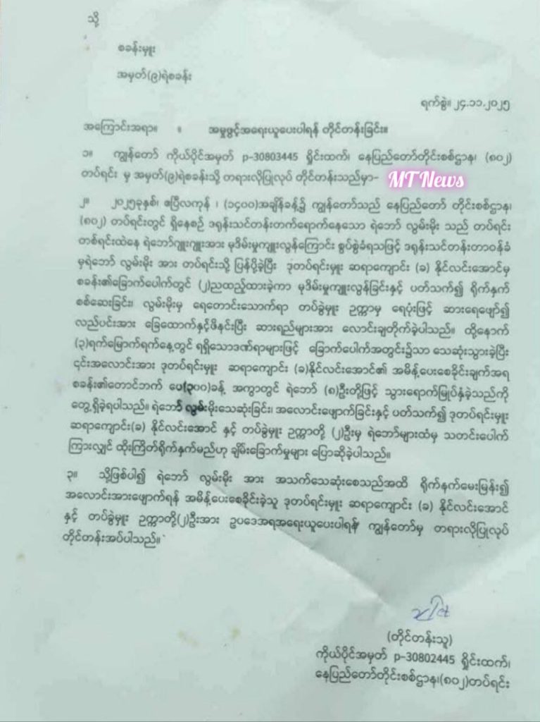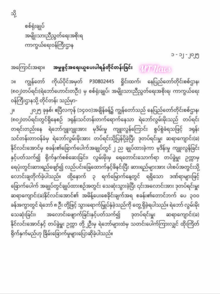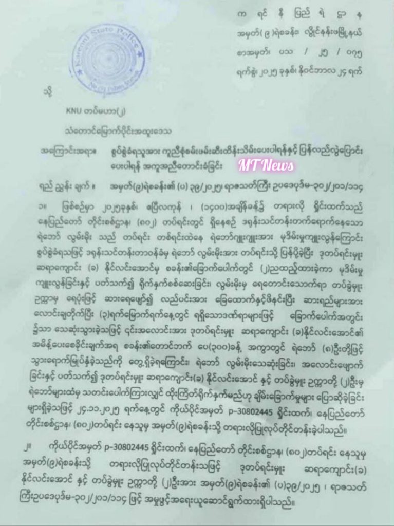 ဖြစ်စဥ်မှာ ၂၀၂၅ ခုနှစ်၊ ဧပြီလကုန်၊ နေ့လယ် ၂ နာရီခန့် အချိန်၌ နေပြည်တော် တိုင်းစစ်ဌာန၊ (၈၀၂) တပ်ရင်းတွင် ဒရုန်းသင်တန်းတက်ရောက်နေသော ရဲဘော် လွမ်းမိုးသည် တပ်ရင်း တစ်ရင်းထဲနေ ရဲဘော်ဂျူးဂျူးအား မုဒိမ်းမှုကျူးလွန်ကြောင်း စွပ်စွဲခံရသဖြင့် ဒရုန်းသင်တန်းတာဝန်ခံမှ ရဲဘော် လွမ်းမိုးအား တပ်ရင်းသို့ ပြန်ပို့ခဲ့ပြီး ဒုတပ်ရင်းမှူး ဆရာကျောင်း (ခ) နိုင်လင်းအောင်မှ စခန်း၏ခြောက်ပေါက် (ထိပ်တုံး) တွင် (၂)ညထည့်ထားခဲ့ကာ မုဒိမ်းမှုကျူးလွန်ခြင်းနှင့် ပတ်သက်၍ ရိုက်နှက် စစ်ဆေးခြင်း၊ လွမ်းမိုးမှ ရေတောင်းသောက်ရာ တပ်ခွဲမှူး ဥက္ကာမှ ရေပုံးဖြင့် ဆားရေဖျော်၍ လည်ပင်းအား ခြေထောက်နှင့်ဖိနင်းပြီး ဆားရည်များအား လောင်းချတိုက်ခဲ့သည်။ ထို့နောက် (၃)ရက်မြောက်ရက်နေ့တွင် ရရှိသောဒဏ်ရာများဖြင့် ခြောက်ပေါက်အတွင်း၌ လွမ်းမိုး သေဆုံးသွားခဲ့ပြီး ၎င်းအလောင်းအား ဒုတပ်ရင်းမှူး ဆရာကျောင်း (ခ)နိုင်လင်းအောင်၏ အမိန့်ပေးစေခိုင်းချက်အရ စခန်း၏တောင်ဘက် ပေ(၃၀၀)ခန့် အကွာတွင် PDF (၈)ဦးတို့ဖြင့် သွားရောက်မြုပ်နှံခဲ့သည်။ ထိုသို့ ရဲဘော် လွမ်းမိုးသေဆုံးခြင်း၊ အလောင်းဖျောက်ခြင်းနှင့် ပတ်သက်၍ ဒုတပ်ရင်းမှူး ဆရာကျောင်း(ခ) နိုင်လင်းအောင်နှင့် တပ်ခွဲမှူး ဥက္ကာတို့ (၂)ဦးမှ PDF များထံမှ သတင်းပေါက်ကြားလျင် ထိုးကြိတ်ရိုက်နှက်မည်ဟု ခြိမ်းခြောက်ခဲ့သဖြင့် PDF လွမ်းမိုးအား အသက်သေဆုံးစေသည်အထိ ရိုက်နက်မေးမြန်း၍ အလောင်းအားဖျောက်ရန် အမိန့်ပေးစေခိုင်းခဲ့သူ ဒုတပ်ရင်းမှူး ဆရာကျောင်း (ခ) နိုင်လင်းအောင်နှင့် တပ်ခွဲမှူး ဥက္ကာတို့(၂)ဦးအား ဥပဒေအရအရေးယူပေးပါရန် နေပြည်တော်တိုင်းစစ်ဌာန၊ (၈၀၂) တပ်ရင်းမှ ကိုယ်ပိုင်အမှတ် P-30803445 ရှိုင်းထက်က NUG နှင့် ကယားရဲတပ်ဖွဲ့၏ အမှတ်(၉)ရဲစခန်းသို့ တရားလိုပြုလုပ် တိုင်တန်းသည့်စာတွင် ဖော်ပြထားမှုအသိရသည်။