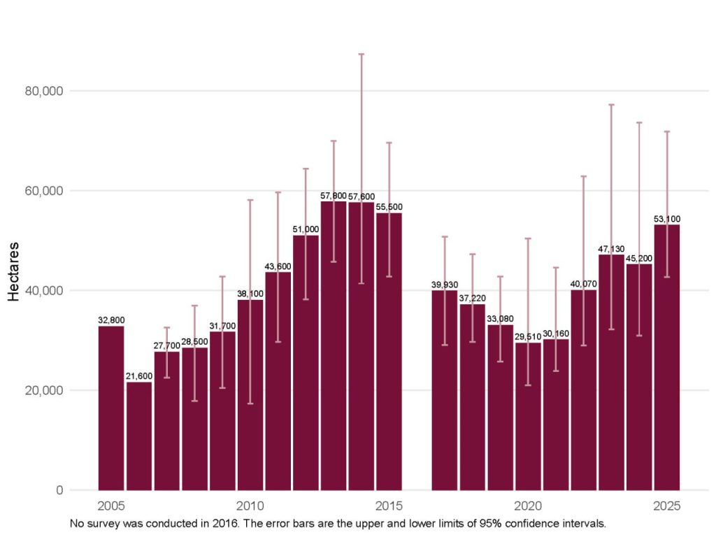 UN Office on Drugs and Crime (UNODC) က ထုတ်ပြန်သော အစီရင်ခံစာအရ ယခုနှစ်တွင် ဘိန်းစိုက်ပျိုးမှုသည် ၂၀၂၄ ခုနှစ်၌ စိုက်ပျိုးခဲ့သော ဟက်တာ ၄၅,၂၀၀ (ဧက ၁၁၂,၀၀၀) မှ ဟက်တာ ၅၃,၁၀၀ (ဧက ၁၃၁,၀၀၀) အထိ မြင့်တက်လာခဲ့သည်။ ၎င်းသည် အာဖဂန်နစ္စတန်၏ ထုတ်လုပ်မှု ကျဆင်းနေချိန်တွင် မြန်မာနိုင်ငံသည် တရားမဝင်ဘိန်း ထုတ်လုပ်ရာ ကမ္ဘာ့ အဓိက ရင်းမြစ်အဖြစ် ရပ်တည်လာနေသည်ကို မီးမောင်းထိုးပြလိုက်ခြင်း ဖြစ်သည်။