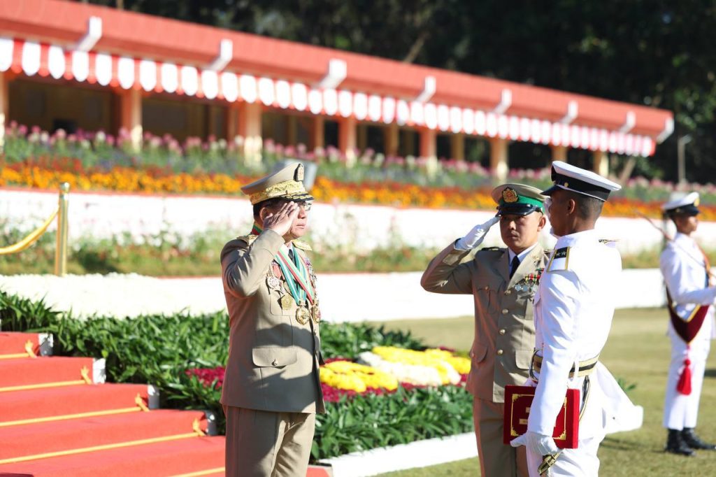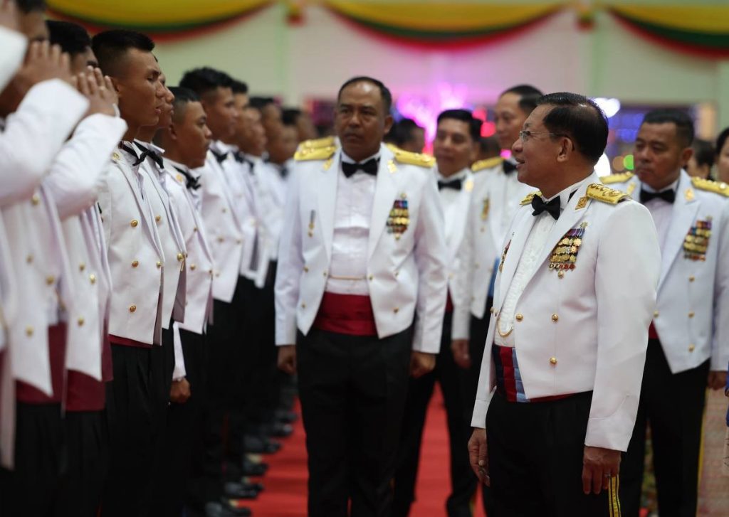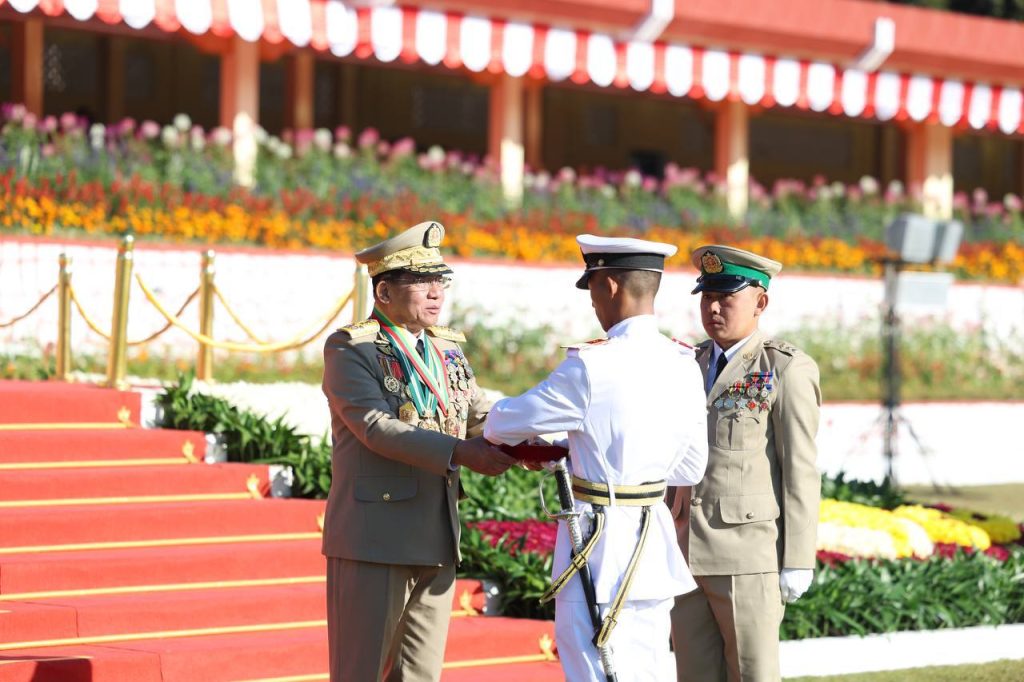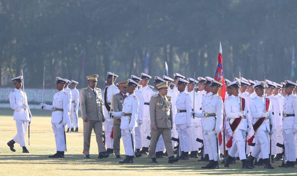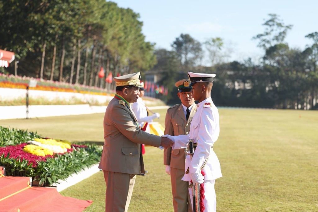 စစ်တက္ကသိုလ် ဗိုလ်လောင်းသင်တန်းအမှတ်စဉ်(၆၇) သင်တန်းဆင်းဂုဏ်ပြုစစ်ရေးပြ အခမ်းအနား ယနေ့ နံနက်ပိုင်းတွင် ပြင်ဦးလွင်မြို့၊ စစ်တက္ကသိုလ်စစ်ရေးပြကွင်း၌ ကျင်းပပြုလုပ်ရာ နိုင်ငံတော်လုံခြုံရေးနှင့် အေးချမ်းသာယာရေးကော်မရှင် ဥက္ကဋ္ဌ တပ်မတော်ကာကွယ်ရေးဦးစီးချုပ် ဗိုလ်ချုပ်မှူးကြီး သတိုးမဟာသရေစည်သူ သတိုးသီရိသုဓမ္မ မင်းအောင်လှိုင် တက်ရောက်မိန့်ခွန်း ပြောကြားသည်။
