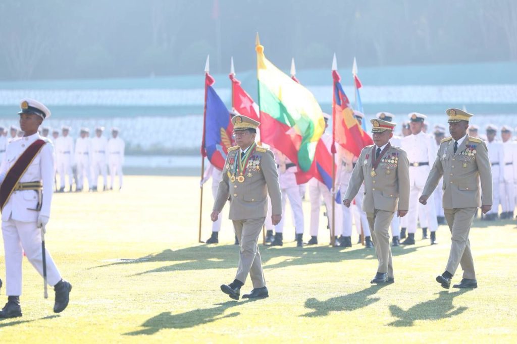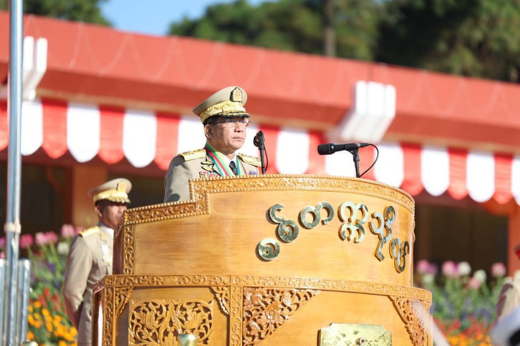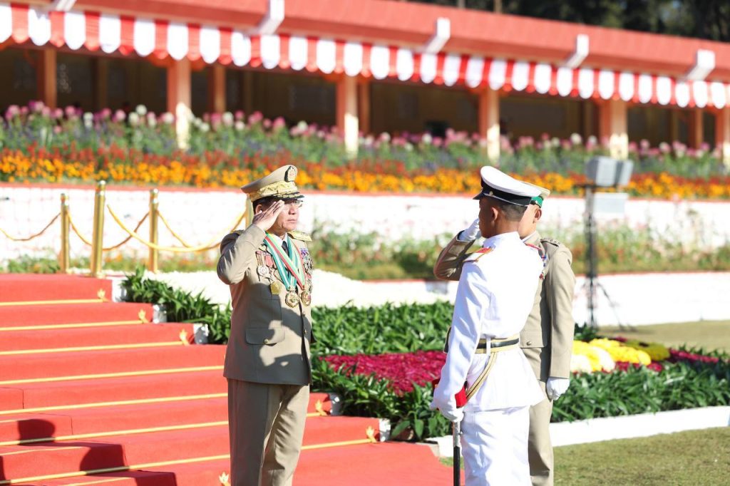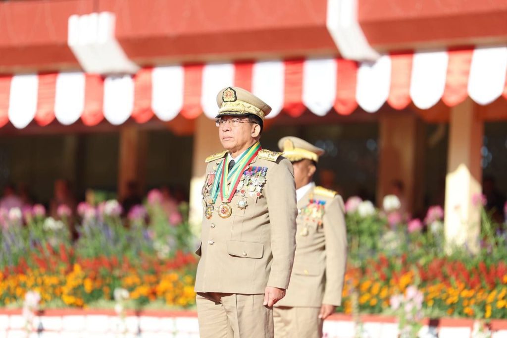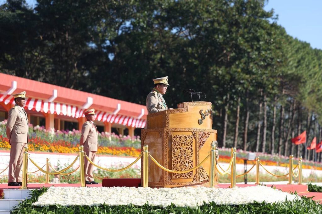 စစ်တက္ကသိုလ် ဗိုလ်လောင်းသင်တန်းအမှတ်စဉ်(၆၇) သင်တန်းဆင်းဂုဏ်ပြုစစ်ရေးပြ အခမ်းအနား ယနေ့ နံနက်ပိုင်းတွင် ပြင်ဦးလွင်မြို့၊ စစ်တက္ကသိုလ်စစ်ရေးပြကွင်း၌ ကျင်းပပြုလုပ်ရာ နိုင်ငံတော်လုံခြုံရေးနှင့် အေးချမ်းသာယာရေးကော်မရှင် ဥက္ကဋ္ဌ တပ်မတော်ကာကွယ်ရေးဦးစီးချုပ် ဗိုလ်ချုပ်မှူးကြီး သတိုးမဟာသရေစည်သူ သတိုးသီရိသုဓမ္မ မင်းအောင်လှိုင် တက်ရောက်မိန့်ခွန်း ပြောကြားသည်။