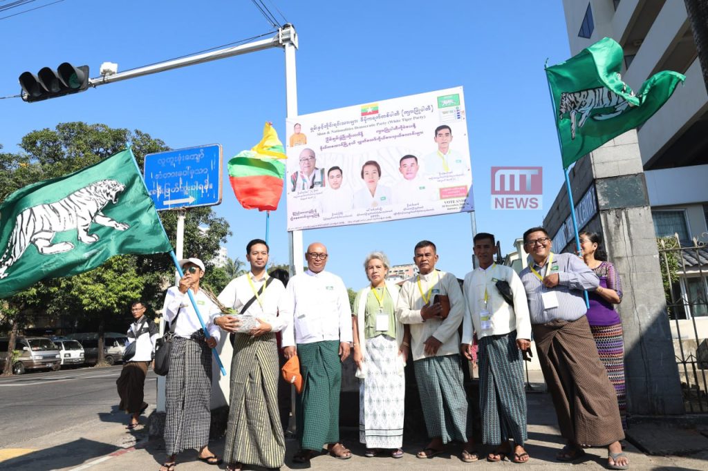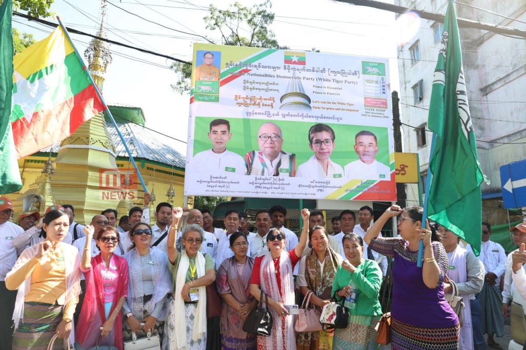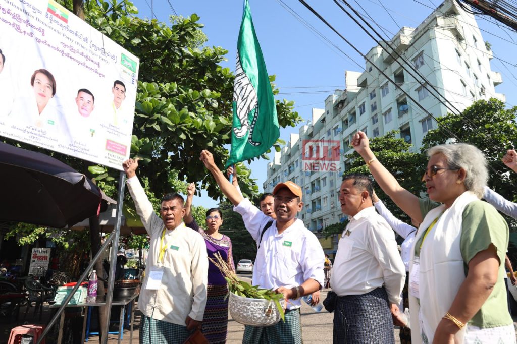 ရှမ်းနှင့် တိုင်းရင်းသားများ ဒီမိုကရက်တစ်ပါတီ(ကျားဖြူပါတီ)၏ ဗဟိုကော်မတီဝင်နှင့် ရန်ကုန်တိုင်းဒေသကြီး ဥက္ကဋ္ဌ ဦးနေမျိုးဇော်က “ဒီနေ့က ဗိုလ်တထောင်မြို့နယ်နဲ့ ပုစွန်တောင်မြို့နယ်ရဲ့ ပါတီအောင်နိုင်ရေးဆိုင်းဘုတ်တွေ စိုက်ထူတဲ့အခမ်းအနားဖြစ်ပါတယ်။ အခုလိုစိုက်ထူတာ ရန်ကုန်မြို့တွင်းနေရာတော်တော်များမှာ ပြီးနေပါပြီ။ ကျန်တာဆိုလို့ မြို့ထဲမှာဆိုရင် ဒဂုံမြို့နယ်။ နောက်ပြီး တောင်ဥက္ကလာကျန်ပါသေးတယ်။ ကျွန်တော်တို့ပါတီက ရန်ကုန်တိုင်းဒေသကြီးမှာဆိုရင် မြို့နယ် ၄၁ မြို့နယ်ကနေ ဝင်ပြိုင်ပါမယ်။ လွှတ်တော်ကိုယ်စားလှယ်လောင်းအနေနဲ့ကတော့ ၁၂၄ ယောက်ပါ။ ရခိုင်တိုင်းရင်းသားရေးရာ ကိုယ်စားလှယ်လောင်းတစ်ယောက် ပါပါမယ်။ ကရင်တိုင်းရင်းသားရေးရာတော့ မပါပါဘူး“ ဟု ပြောကြားခဲ့သည်။
