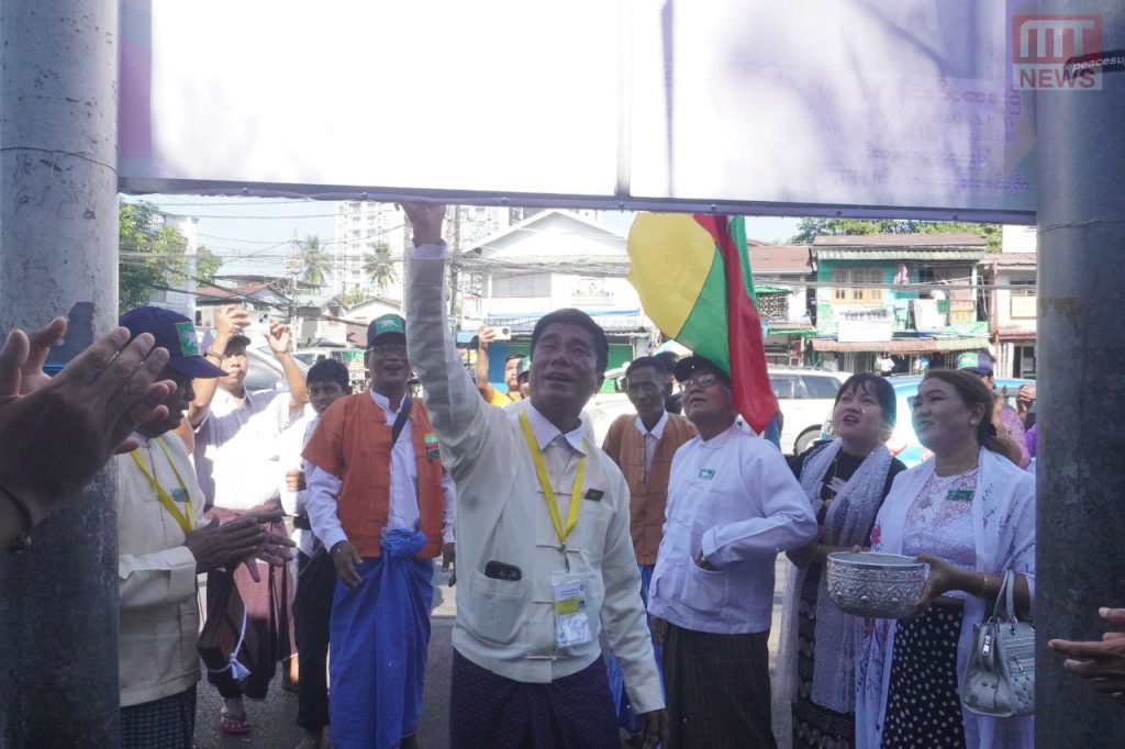 အဆိုပါ အောင်နိုင်ရေးဆိုင်းဘုတ်များကို ကျားဖြူပါတီမှ ရန်ကင်းမြို့နယ်ကိုယ်စားပြုယှဉ်ပြိုင်မည့် ပြည်သူ့လွှတ်တော်ကိုယ်စားလှယ်လောင်း ဦးအောင်သိန်း၊ အမျိုးသားလွှတ်တော်ကိုယ်စားလှယ်လောင်း(FPTP) ဦးအောင်ဇော်၊ တိုင်းဒေသကြီးလွှတ်တော်ကိုယ်စားလှယ်(FPTP) ဦးမျိုးအောင်နှင့် ရန်ကုန်တိုင်းဒေသကြီး၊ ရခိုင်တိုင်းရင်းသားကိုယ်စားလှယ်လောင်း ဦးတင်မောင်တို့ အောင်သပြေနံ့သာရည်များ ပက်ဖြန်း၍ လိုက်လံဖွင့်လှစ်ခဲ့ကြသည်။