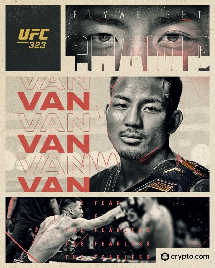 မြန်မာနိုင်ငံကိုယ်စားပြု ချင်းလူငယ်ဖိုက်တာ Joshua Van သည် ယမန်နေ့က ကျင်းပခဲ့သော UFC 323 တွင် ဖလိုင်းဝိတ်ချန်ပီယံဆုကို လေးကြိမ်ကာကွယ်ခဲ့သော Alexandre Pantoja အား ပွဲအစ စက္ကန့် ၂၀ အကြာတွင်ပင် ဦးခေါင်းကန်သော ညာခြေကိုဖမ်းကာ တွန်းထုတ်ရာမှ Pantoja အောက်ခြေလွတ် အကျနာပြီး တံတောင်ဆစ် အဆစ်ပြုတ်ကာ အထိနာခဲ့သဖြင့် ဒိုင်ပွဲရပ်ဖြင့် အနိုင်ယူကာ အာရှတိုက်နှင့် မြန်မာနိုင်ငံ၏ ပထမဆုံး အမျိုးသား UFC ဖလိုင်းဝိတ်ချန်ပီယံ၊ UFC ၏ ဒုတိယအသက်အငယ်ဆုံးချန်ပီယံနှင့် ဖလိုင်းဝိတ်ဘုရင်ကြီးပန်တိုဂျာကို ပထမဆုံး အလဲထိုးနိုင်သူအဖြစ် အမေရိကန်နိုင်ငံနှင့် ဇာတိမြန်မာနိုင်ငံကို ဂုဏ်တင့်စေခဲ့ခြင်းဖြစ်သည်။