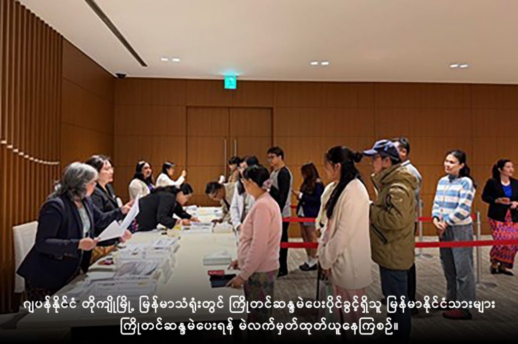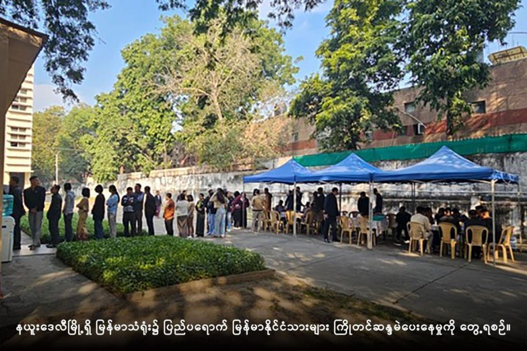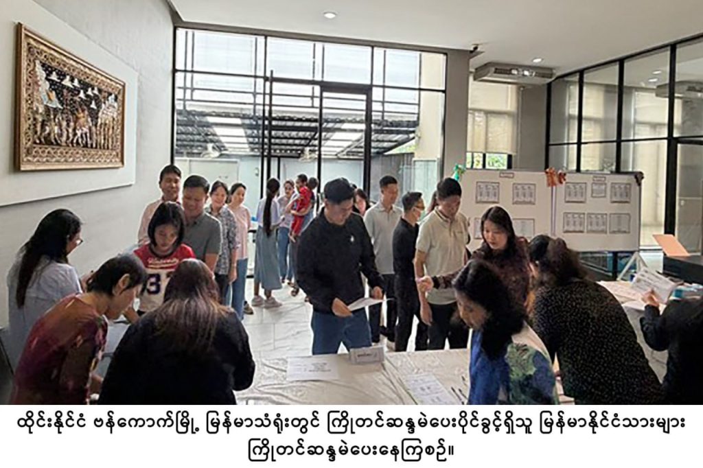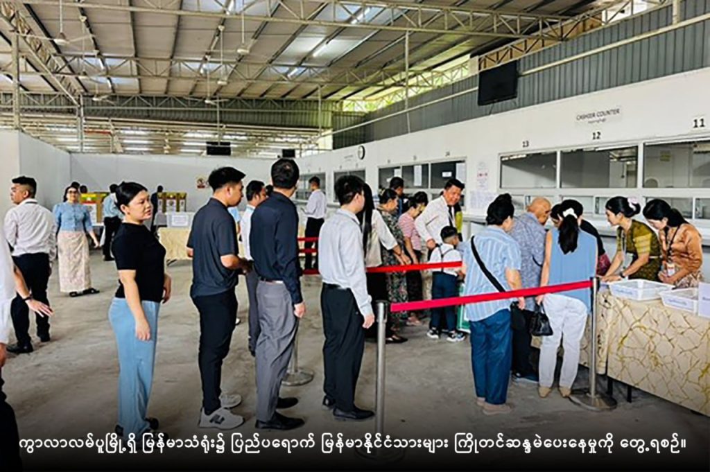 ပုံစာ။ ပြည်ပရောက်မြန်မာနိုင်ငံသားများ၏ ကြိုတင်မဲပေးနေမှုမြင်ကွင်း။