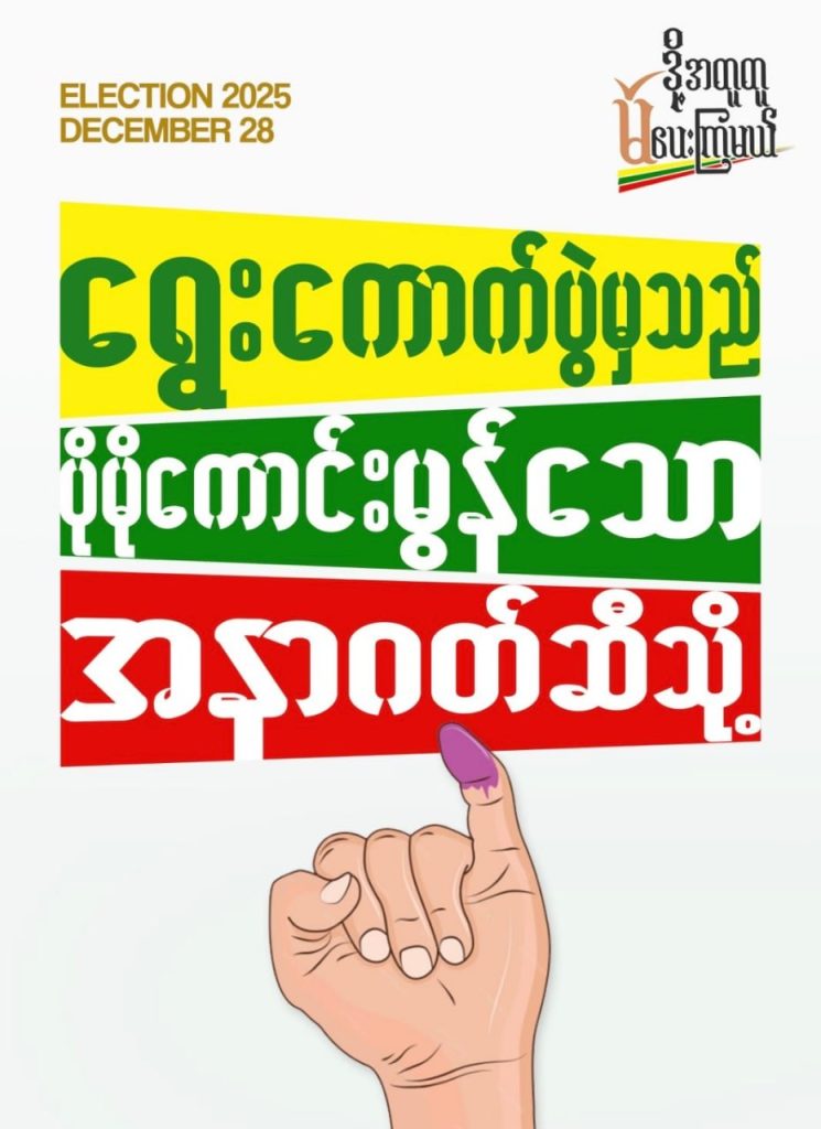 လာမည့် ဒီဇင်ဘာ ၂၈ ရက်မှ စတင်ကျင်းပမည့်ရွေးကောက်ပွဲကို စောင့်ကြည့်လေ့လာမည်ဟု မြန်မာ နိုင်ငံအမျိုးသားလူ့အခွင့်အရေးကော်မရှင်က ယနေ့ကျရောက်သည့် အပြည်ပြည်ဆိုင်ရာလူ့အခွင့်အရေးနေ့အခါသမယတွင် ထုတ်ပြန်သည့် သတင်းထုတ်ပြန်ချက်အမှတ် (၁၇/၂၀၂၅) ဖြင့် ကြေညာချက်၌ ထည့်သွင်း ဖော်ပြထားသည်။