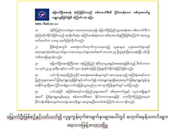 ◾️သေဆုံး၊ ဒဏ်ရာရရှိသူများသည် ပြည်သူများ မဟုတ်ဘဲ AA အကြမ်းဖက်သောင်းကျန်းသူများနှင့် ၎င်းတို့ကို အားပေးထောက်ခံသူများသာဖြစ်ကြောင်း ၎င်းတို့ကိုယ်တိုင် ဝမ်းနည်းကြောင်း ရေးသားဖြန့်ဝေထားသည့် ဓာတ်ပုံသက်သေများနှင့်တကွ တုံ့ပြန်ထား