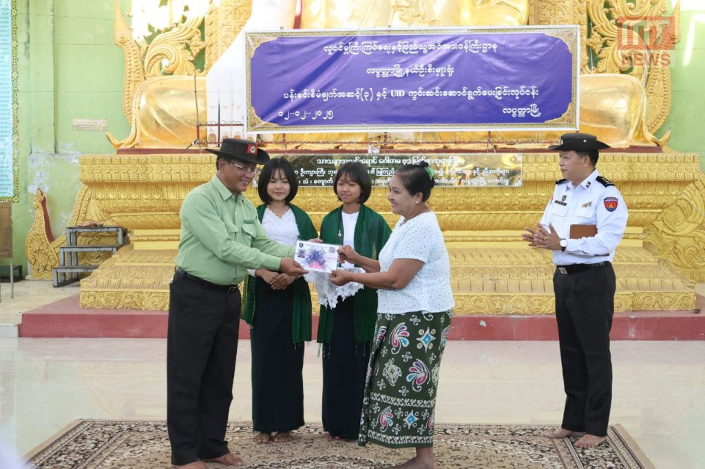 ထို့နောက် ပြည်ထောင်စုဝန်ကြီးသည် တာဝန်ရှိသူများအား သက်ဆိုင်ရာ ရပ်ကွက်/ကျေးရွာများ အတွင်း အသက်ပြည့်မီပြီး နိုင်ငံသားကတ်ပြားမရရှိသေးသူများ မကျန်ရှိစေရေး တာဝန်ရှိသူများနှင့် ညှိနှိုင်းဆောင်ရွက်ပေးနိုင်ရေး၊ မှားယွင်းမှုမရှိစေရေးအတွက် အလေးထားဆောင်ရွက်ပေးကြရန် မှာကြားပြီးနောက် One Stop Service ဖြင့် ဆောင်ရွက်ပြီးဖြစ်သည့် နိုင်ငံသားစိစစ်ရေးကတ်ပြားများနှင့် Unique ID နံပါတ်များကို ပြည်ထောင်စုဝန်ကြီးနှင့်တာဝန်ရှိသူများကကာယကံရှင်ပြည်သူများနှင့် ရပ်ကွက်ကိုယ်စားလှယ်များထံ ပေးအပ်ခဲ့ကြောင်း သိရသည်။