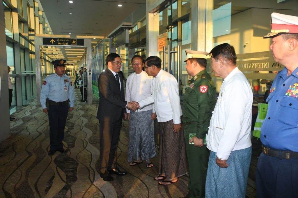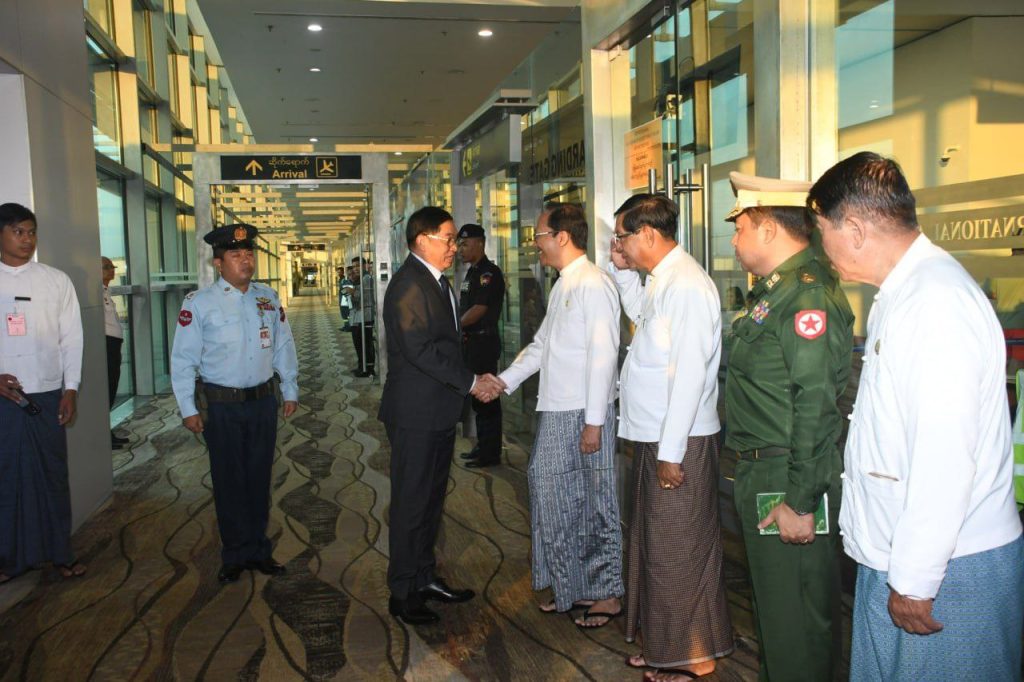 နိုင်ငံတော်ဝန်ကြီးချုပ်နှင့်အဖွဲ့အား ကျန်းမာရေးဝန်ကြီးဌာန ပြည်ထောင်စုဝန်ကြီး ဒေါက်တာ သက်ခိုင်ဝင်း၊ ရန်ကုန်တိုင်းဒေသကြီး ဝန်ကြီးချုပ် ဦးစိုးသိန်း၊ ရန်ကုန်တိုင်းစစ်ဌာနချုပ် တိုင်းမှူး ဗိုလ်ချုပ်ပြည့်စုံလင်းနှင့် တိုင်းဒေသကြီးအစိုးရအဖွဲ့မှ တာဝန်ရှိသူများက ရန်ကုန်အပြည်ပြည်ဆိုင်ရာလေဆိပ်၌ ကြိုဆိုနှုတ်ဆက်ခဲ့ကြသည်။