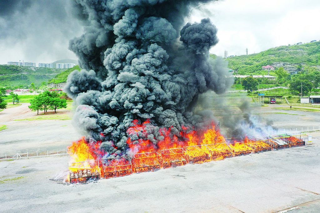 အလားတူ မူးယစ်ဆေးဝါးဖျက်ဆီးမှုများအဖြစ်လည်း ၂၀၂၁ ခုနှစ်တွင် ၁၀၆၈ ဒသမ ၆၆ ဘီလျံကျော်၊ ၂၀၂၂ ခုနှစ်တွင် ၁,၁၈၈ ဒသမ ၈၂၈ ဘီလျံကျော်၊ ၂၀၂၃ ခုနှစ်တွင် ၉၃၆ ဒသမ ၇၂၃ ဘီလျံကျော်၊ ၂၀၂၄ ခုနှစ်တွင် ၁,၁၆၃ ဒသမ ၆၄၈ ဘီလျံကျော်၊ ၂၀၂၅ ခုနှစ်တွင် ၉၇၁ ဒသမ ၇၉ ဘီလျံကျော် စုစုပေါင်းတန်ဖိုးငွေကျပ် ၅,၃၂၉ ဘီလျံကျော် တန်ဖိုးရှိ မူးယစ်ဆေးဝါးနှင့် ဓာတုပစ္စည်းများမီးရှို့ဖျက်ဆီးနိုင်ခဲ့ကြောင်း မြန်မာနိုင်ငံတပ်ဖွဲ့ ရဲချုပ်က ပြောကြားသည်။