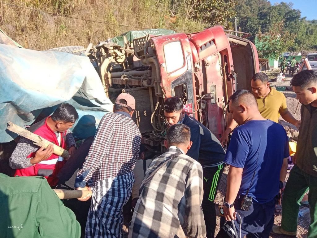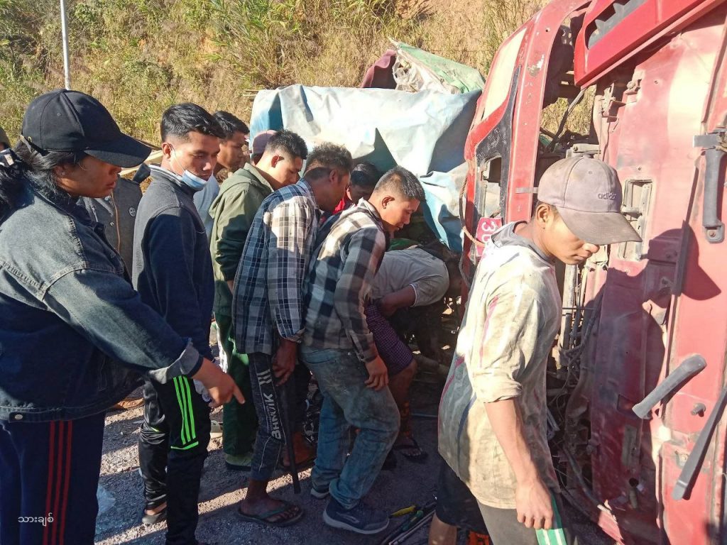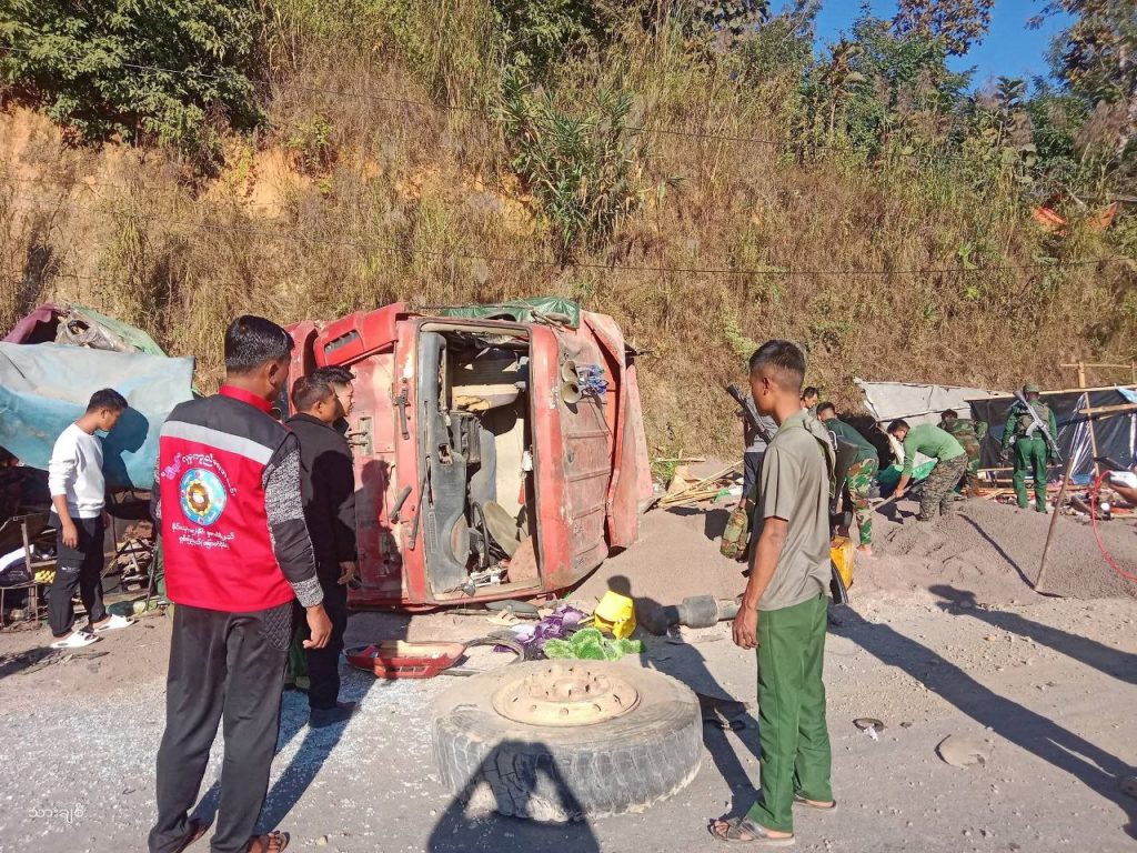 ဖြစ်စဥ်မှာ ဗြုန်းကျောက်များတင်လာသောကားတစ်စီးက ဘရိတ်ပေါက်ပြီး မြောက်ပိုင်းလက်နက်ကိုင်သုံးဖွဲ့စခန်းချနေသည့် ၁၀၅ မိုင် အဝင်ဂိတ်အနီးရှိ ခရီးသည်များနှင့် လမ်းသွားလမ်းလာများ၊ လမ်းဘေးစျေးဆိုင်များ ကိုဝင်တိုက်ခဲ့ခြင်းဖြစ်ပြီး ယာဥ်တိုက်မှုကြောင့် အသက် ၅၅ နှစ်အရွယ် အမျိုးသမီးကြီးတစ်ဦးနှင့်အသက် ၆၃ နှစ်အရွယ် အဘွားအိုတစ်ဦး စုစုပေါင်း ခရီးသည်နှစ်ဦး သေဆုံးခဲ့ကြောင်း သိရသည်။
