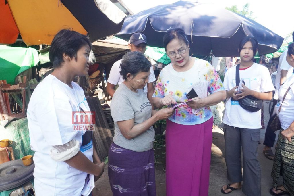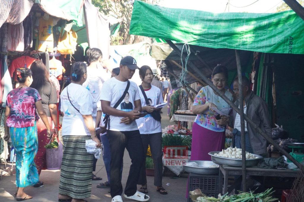 မရမ်းကုန်းမြို့နယ်၊ တစ်သီးပုဂ္ဂလ ပြည်သူ့ လွှတ်တော်ကိုယ်စားလှယ်လောင်း ဒေါက်တာခင်ခင်ကျော့သည် ယနေ့နံနက် ၉ နာရီက မရမ်းကုန်းမြို့နယ်၊ (၁) ရပ်ကွက်ရှိ သမိုင်းဘူတာဈေးအတွင်း လက်ကမ်းစာစောင်များ၊ ပြက္ခဒိန်များဝေကာ မဲဆွယ်စည်းရုံးခဲ့သည်။