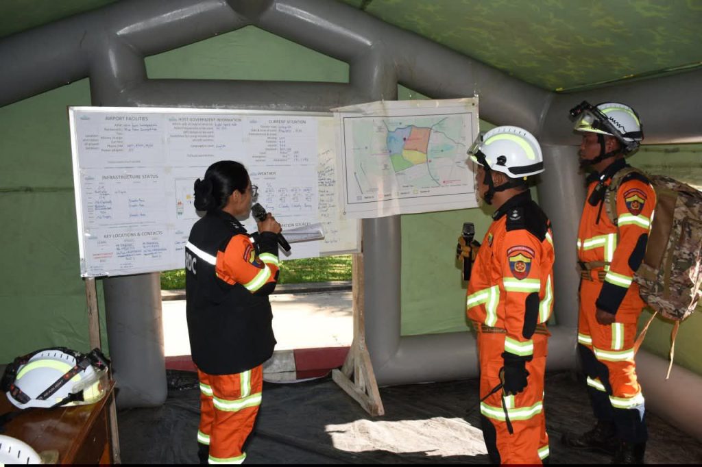 ထို့ကြောင့် နိုင်ငံတော်မှ အဆိုပါ Team အတွက် လိုအပ်သော ရှာဖွေကယ်ဆယ်ရေးလုပ်ငန်းသုံးယာဉ်/ စက်ပစ္စည်းကိရိယာများ ဝယ်ယူဖြည့်တင်းပေးခဲ့ပြီးဖြစ်ရာ အဆိုပါ ယာဉ်/ စက်ပစ္စည်းကိရိယာများနှင့်အတူ ရှာဖွေကယ်ဆယ်ရေးအဖွဲ့ (National Search and Rescue Medium Team)များ၏ ငလျင်ဘေးအန္တရာယ်တုံ့ပြန် ဆောင်ရွက်မှု ရှာဖွေကယ်ဆယ်ရေးစွမ်းရည် သရုပ်ပြသခြင်းအခမ်းအနားပြုလုပ်ခဲ့ခြင်းဖြစ်ကြောင်း သိရသည်။