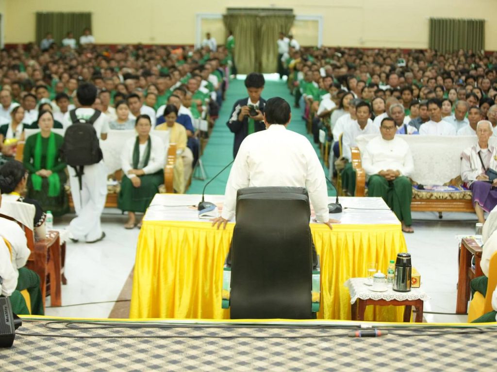 ကရင်ပြည်နယ်၊ ဘားအံမြို့တွင် ကျင်းပသည့် ပြည်ခိုင်ဖြိုးပါတီ၏ ရွေးကောက်ပွဲကြေညာစာတမ်း ရှင်းလင်းခြင်းနှင့် လွှတ်တော်ကိုယ်စားလှယ်လောင်းများ မိတ်ဆက်အပ်နှံခြင်း အခမ်းအနားကို ဒီဇင်ဘာ ၁၆ ရက် နံနက်ပိုင်းက ပြုလုပ်ခဲ့ပြီး ပြည်ထောင်စုကြံ့ခိုင်ရေးနှင့်ဖွံ့ဖြိုးရေးပါတီ ဥက္ကဋ္ဌ ဦးခင်ရီနှင့် ကိုယ်စားလှယ်လောင်းများ တက်ရောက်ခဲ့ကြောင်း သိရသည်။