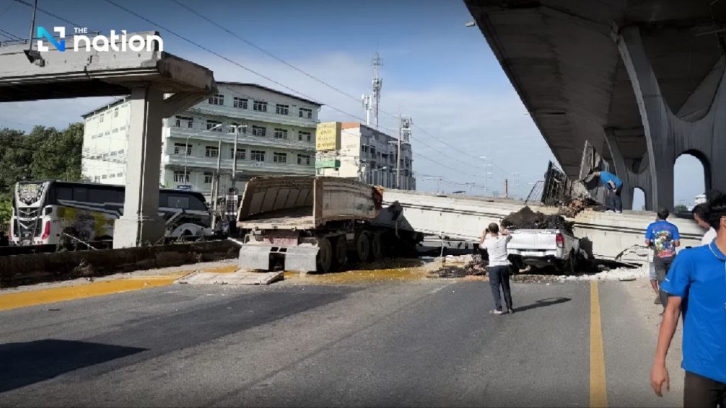 ထိုင်းနိုင်ငံ၊ စမွတ်ပရာကန်ပြည်နယ်အတွင်း၌ ယနေ့ ဒီဇင်ဘာလ ၁၈ ရက် နံနက်တွင် မြေသယ်ထရပ်ကားတစ်စီးက ခုံးကျော်မိုးပျံတံတားတစ်စင်းကို ဝင်တိုက်မိပြီးနောက် တံတားက ဘန်နာ-ထရတ် လမ်းမပေါ် တွင် သွားလာနေသော ကားနှစ်စီးပေါ်သို့ ပြိုကျခဲ့ရာ ခရီးသည်သုံးဦး ပိတ်မိနေခဲ့ပြီး လမ်းတစ်လျှောက် ယာဉ်ကြောပိတ်ဆို့မှုများ ဖြစ်ပေါ်စေခဲ့ကြောင်း သိရသည်။