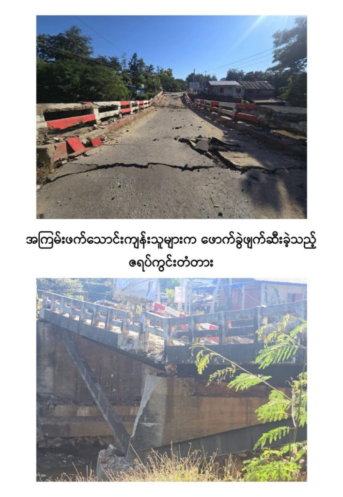 နိုင်ငံတော်ပျက်စီးရာပျက်စီးကြောင်းကို နည်းလမ်းမျိုးစုံဖြင့် အစဉ်တစိုက် ကြိုးပမ်းလုပ်ဆောင်နေသော CRPH ၊ NUG အမည်ခံအကြမ်းဖက်အဖွဲ့အစည်းများ၏ လက်ဝေခံ PDF အမည်ခံအကြမ်းဖက်သမားများသည် အဆိုပါဒေသအား ယာယီစိုးမိုးထားစဉ် မြို့/ရွာများအတွင်း ဘာသာရေးဆိုင်ရာအဆောက်အအုံများ၊ စာသင်ကျောင်းများ၊ ဌာနဆိုင်ရာအဆောက်အအုံများ၊ ဆေးရုံများနှင့် လူနေအိမ်များအတွင်း ဝင်ရောက်နေရာယူ၍ ဘန်ကာများပြုလုပ်ခြင်း၊ ပြည်သူများ၏ အိုးအိမ်များကို ခံစစ်တံတိုင်းအဖြစ် အကာကွယ်ရယူ၍ ပစ်ခတ်တိုက်ခိုက်ခြင်း၊ ပြည်သူများ အဓိကသွားလာအသုံးပြုလျက်ရှိသည့် အဆိုပါဒေသရှိ ဧရာဝတီတံတား(ရတနာသိင်္ဃ)၊ ကျောက်စရစ်ကုန်းတံတား၊ ဇရပ်ကွင်းတံတားနှင့်အပါအဝင် လမ်း၊ တံတားကြီးများအား မိုင်းထောင်ဖောက်ခွဲဖျက်ဆီးခြင်းများ တိုင်းပြည်ဖွံ့ဖြိုးတိုးတက်မှုကို တစ်ဖက်တစ်လမ်းမှ အထောက်အကူပြုနေသည့် စက်ရုံ၊ အလုပ်ရုံများနှင့် ဌာနဆိုင်ရာ အဆောက်အအုံများအား မီးရှို့ဖျက်ဆီးခြင်းများ လုပ်ဆောင်ခဲ့သည်။