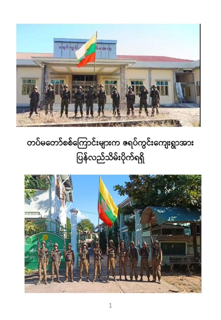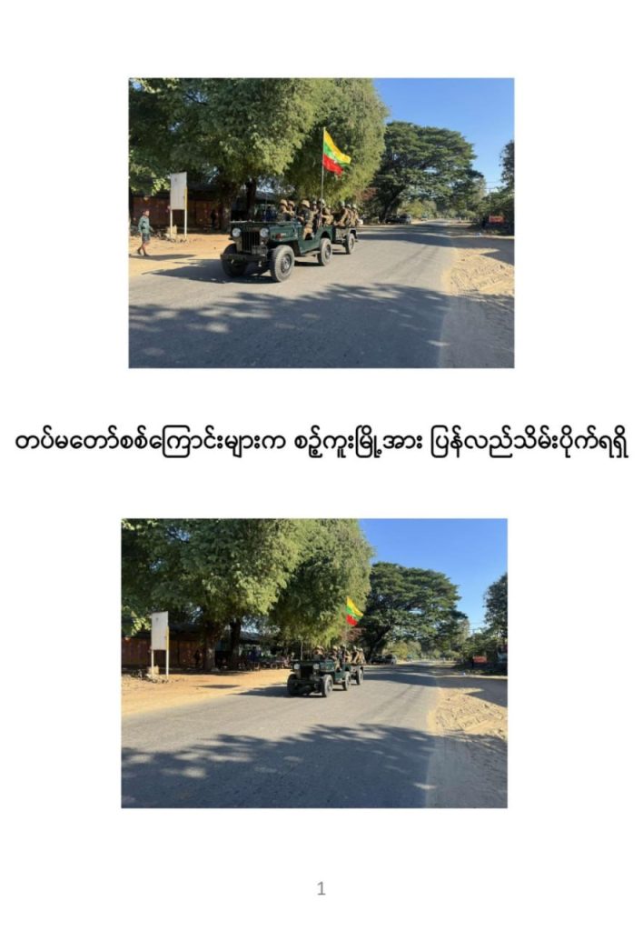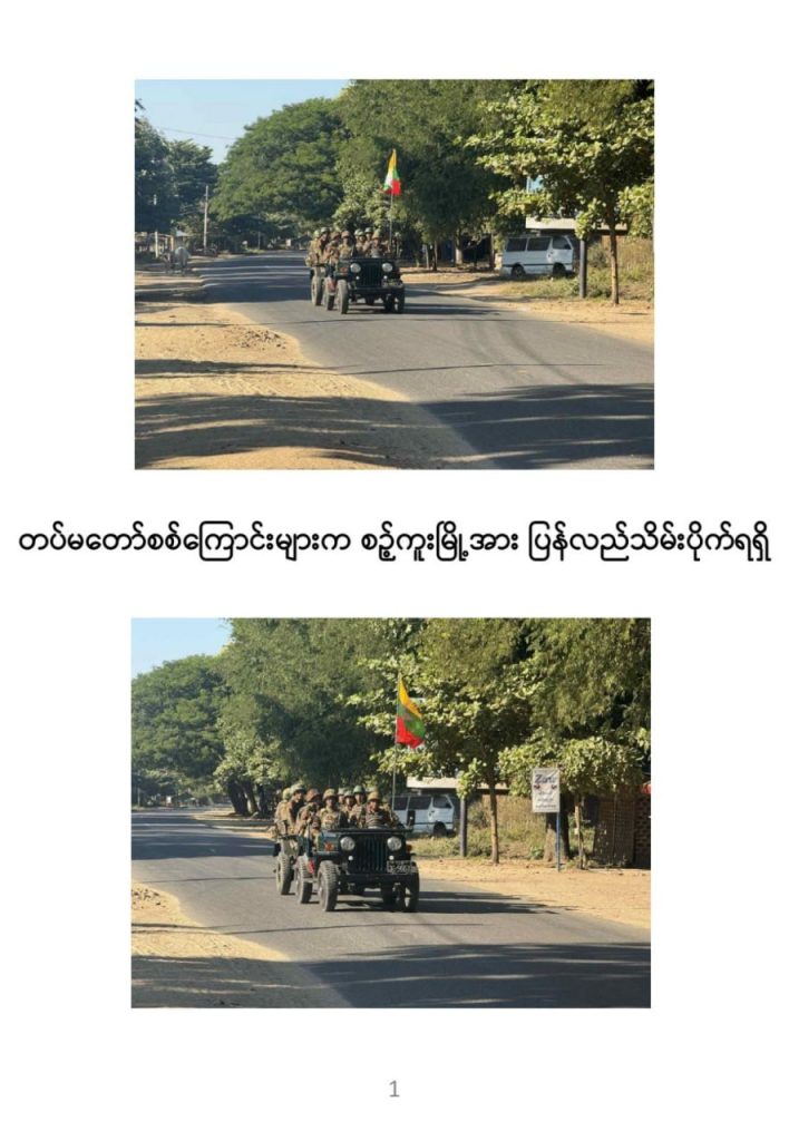 PDF သောင်းကျန်းသူပူးပေါင်းအဖွဲ့များ ယာယီစိုးမိုးထားသည့် စဉ့်ကူးမြို့နှင့် လက်ပန်လှကျေးရွာ ဒေသတစ်ဝိုက်အား တပ်မတော်စစ်ကြောင်းများက ယနေ့တွင် ပြန်လည်သိမ်းပိုက်ရရှိခဲ့ကြောင်း ယခုညတွင် အတည်ပြုထုတ်ပြန်သည်။