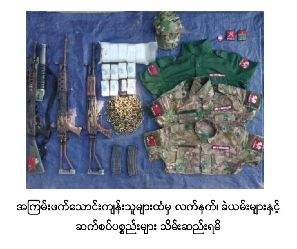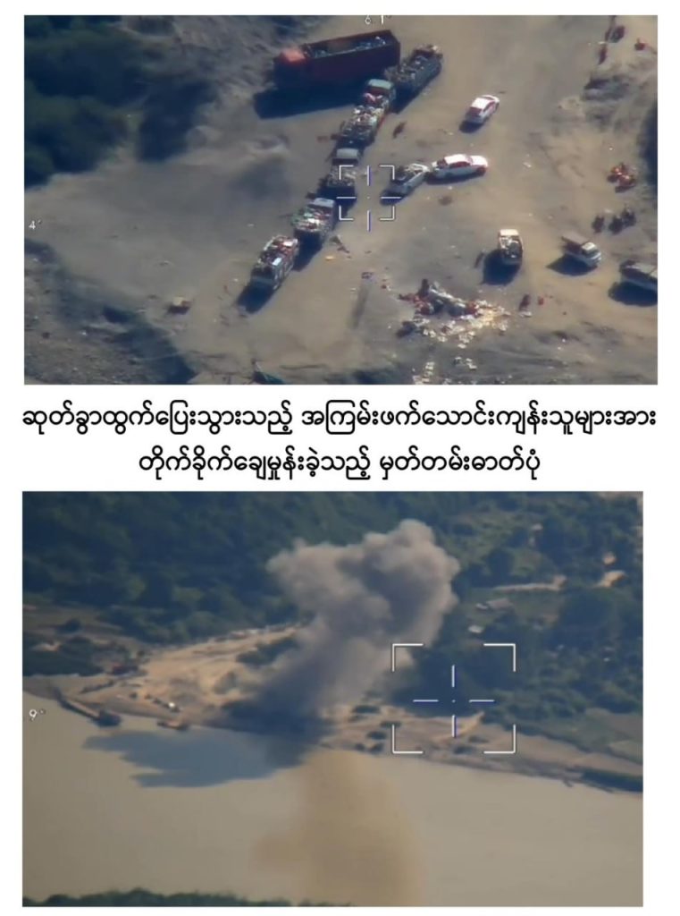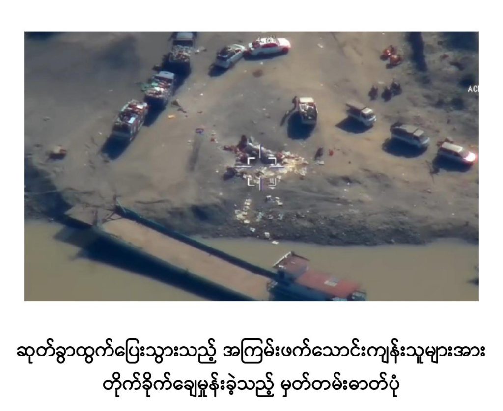 ယခု ဆုတ်ခွာထွက်ပြေးစဉ်တွင်လည်း ၎င်းတို့လုပ်ဆောင်နေကျနည်းလမ်းများဖြစ်သည့် ပြည်သူများပိုင်ဆိုင်သည့် အဖိုးတန်နှင့် အမြတ်တနိုးသိမ်းဆည်းထားသော ပစ္စည်းများအား အတင်းအဓမ္မယူဆောင်ခြင်း၊ အဆိုပါဒေသအတွင်းရှိ နိုင်ငံတော်၏ သယံဇာတဖြစ်သော တရားဝင်ခွင့်ပြုထားသည့် ရွှေလုပ်ကွက်များအတွင်း အတင်းအဓမ္မဝင်ရောက်လုပ်ကိုင်တူးဖော်ခြင်း၊ ပြည်သူများပိုင်ဆိုင်သည့် အဖိုးတန်ပစ္စည်းများကို လက်နက်အားကိုးဖြင့် အနိုင်ကျင့်ယူဆောင်ခြင်းများ ပြုလုပ်ကာ ရွှေ/သတ္တု ရောရာ မြေစာများနှင့် အဖိုးတန်ပစ္စည်းများအား ယာယီနေရပ်စွန့်ခွာ ပြည်သူများထားရှိခဲ့သည့် မော်တော်ယာဉ်များဖြင့် တင်ဆောင်ကာ ဧရာဝတီမြစ်အားဖြတ်ကူး၍ ဆုတ်ခွာထွက်ပြေးရန် လုပ်ဆောင်လျက်ရှိကြောင်း မြေပြင်သတင်းဖော်ထုတ်ချက်အရ တပ်မတော်စစ်ကြောင်းများက မြေပြင်၊ ဝေဟင်စစ်နည်းဗျူဟာမြောက် ပေါင်းစပ်ချေမှုန်းခဲ့ရာ အကြမ်းဖက်သောင်းကျန်းသူများသည် အထိနာစွာဖြင့် ဧရာဝတီမြစ်အနောက်ဘက်သို့ ဆုတ်ခွာထွက်ပြေးစဉ် အစီအစဉ်ပျက်ပြားကာ ဦးတည်ရာမဲ့ထွက်ပြေးလျက်ရှိပြီး အဆိုပါအကြမ်းဖက်သောင်းကျန်းသူများကိုလည်း တပ်မတော်စစ်ကြောင်းများက မြေပြင်/ဝေဟင်ပေါင်းစပ်၍ ထပ်ချပ်လိုက်လံချေမှုန်းလျက်ရှိကြောင်းနှင့် စဉ့်ကူးမြို့နှင့် လက်ပန်လှကျေးရွာအတွင်း ယာယီနေရပ်စွန့်ခွာပြည်သူများ အန္တရာယ်ကင်းရှင်းစွာ ပြန်လည်ဝင်ရောက်နေထိုင်နိုင်ရေးနှင့် အစိုးရအုပ်ချုပ်မှုယန္တရား အမြန်ဆုံးပြန်လည်လည်ပတ်နိုင်ရေးအတွက် လိုအပ်သည့် နယ်မြေလုံခြုံရေးလုပ်ငန်းများ တိုးမြှင့်ဆောင်ရွက်လျက်ရှိကြောင်း သတင်းရရှိသည်။