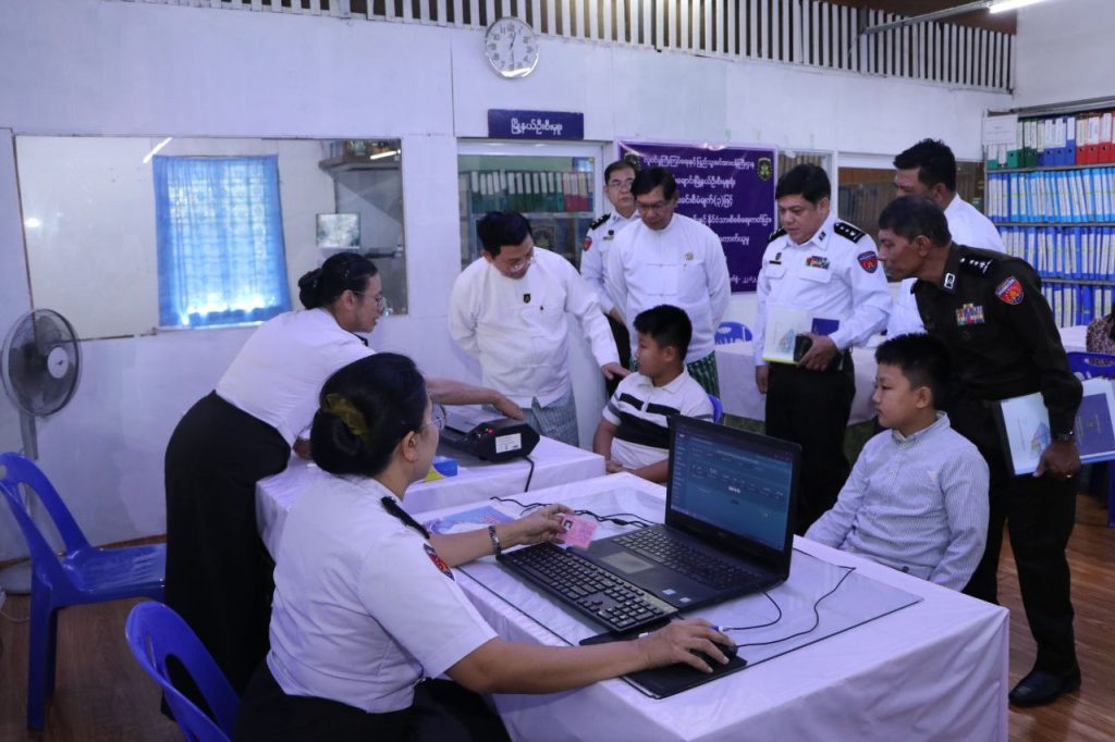 ဆက်လက်၍ ပန်းခင်းစီမံချက်အဆင့်(၃)ဖြင့် လုပ်ထုံး လုပ်နည်းနှင့်အညီစိစစ်၍ One Stop Service ဖြင့် ဆောင်ရွက်နေမှုနှင့် နိုင်ငံသားစိစစ်ရေးကတ်ပြားရရှိပြီးသူများအား e-ID စနစ်ဖြင့် Biographic/ Biometric ကောက်ယူကာ Unique ID နံပါတ်တစ်ပါတည်း ဆောင်ရွက်ထုတ်ပေးနေမှု အခြေအနေများကို လှည့်ကြည့်ရှုကြသည်။