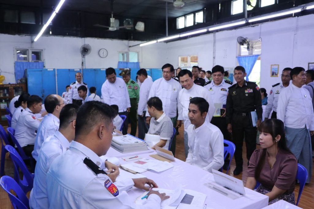 ထို့နောက် ပြည်ထောင်စုဝန်ကြီးနှင့် တိုင်းဒေသကြီးဝန်ကြီးချုပ်တို့သည် မြို့နယ်ရုံး၏ ရုံးခန်းများအတွင်း ရုံးစာရွက်စာတမ်းများနှင့် ရုံးသုံးပစ္စည်းများထိန်းသိမ်းထားရှိမှု၊ မှတ်တမ်းခန်း အတွင်း ကိုယ်ရေးမှတ်တမ်းများ စနစ်တကျထိန်းသိမ်းထားရှိမှုအခြေအနေများကို လှည့်လည် ကြည့်ရှုစစ်ဆေးပြီး စာရွက်စာတမ်းနှင့် စက်ပစ္စည်းကိရိယာများ လုံခြုံမှုရှိစေရေး၊ မဲပေးပိုင်ခွင့် ရှိသူတိုင်း ကိုင်ဆောင်ကတ်ပြားတစ်မျိုးမျိုး ကိုင်ဆောင်မဲပေးနိုင်ရေးအတွက် အလေးထားဆောင်ရွက်ကြရန် မှာကြားခဲ့ကြောင်း သိရသည်။