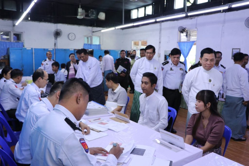 လူဝင်မှုကြီးကြပ်ရေးနှင့် ပြည်သူ့အင်အားဝန်ကြီးဌာန ပြည်ထောင်စုဝန်ကြီး ဦးမြင့်ကြိုင်သည် ရန်ကုန်တိုင်းဒေသကြီးအစိုးရအဖွဲ့၊ တိုင်းဒေသကြီးဝန်ကြီးချုပ်ဦးစိုးသိန်းနှင့် အစိုးရအဖွဲ့ အဖွဲ့ဝင်ဝန်ကြီးများ၊ တာဝန်ရှိသူများ လိုက်ပါလျက် ဒီဇင်ဘာလ ၂၂ ရက် နံနက်ပိုင်းတွင် လူဝင်မှုကြီးကြပ်ရေးနှင့် ပြည်သူ့အင်အားဝန်ကြီးဌာန စမ်းချောင်းမြို့နယ်ဦးစီးမှူးရုံး၌ အိမ်ထောင်စုလူဦးရေစာရင်းနှင့် နိုင်ငံသားစိစစ်ရေးကတ်ပြား ပျက်စီး/ပျောက်ဆုံးသွားသည့် ဒေသခံပြည်သူများနှင့် အသက်(၁၈)နှစ်ပြည့် နိုင်ငံသားစိစစ်ရေး မလျှောက်ထားသေးသူများအား ပန်းခင်းစီမံချက် အဆင့်(၃)ဖြင့် ဆောင်ရွက်ပေးနေမှုကို ကြည့်ရှုအားပေးခဲ့ပြီး လိုအပ်သည်များကို တာဝန်ရှိသူများနှင့် ညှိနှိုင်းဆောင်ရွက်ပေးခဲ့ကြောင်း သိရသည်။