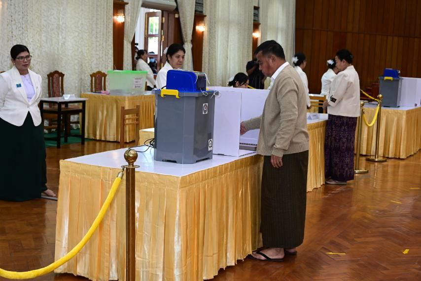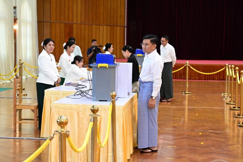 ၂၀၂၅ ခုနှစ် ပါတီစုံဒီမိုကရေစီအထွေထွေ ရွေးကောက်ပွဲ အပိုင်း (၁)အား ယနေ့ စတင်ကျင်းပခဲ့ရာ နိုင်ငံတော်လုံခြုံရေးနှင့် အေးချမ်းသာယာရေးကော်မရှင် ဒုတိယဥက္ကဋ္ဌ ဒုတိယတပ်မတော်ကာကွယ်ရေးဦးစီးချုပ်၊ ဒုတိယဗိုလ်ချုပ်မှူးကြီးစိုးဝင်း၊ ကောင်စီတွဲဖက်အတွင်းရေးမှူး၊ စစ်ဘက်ရေးရာလုံခြုံရေးအရာရှိချုပ် ဗိုလ်ချုပ်ကြီးရဲဝင်းဦး၊ ကော်မရှင်အဖွဲ့ဝင် ညှိနှိုင်းကွပ်ကဲရေးမှူး (ကြည်း၊ ရေ၊ လေ) ဗိုလ်ချုပ်ကြီးကျော်စွာလင်းတို့ လာရောက်မဲပေးကြသည်ကို တွေ့ရှိရသည်။