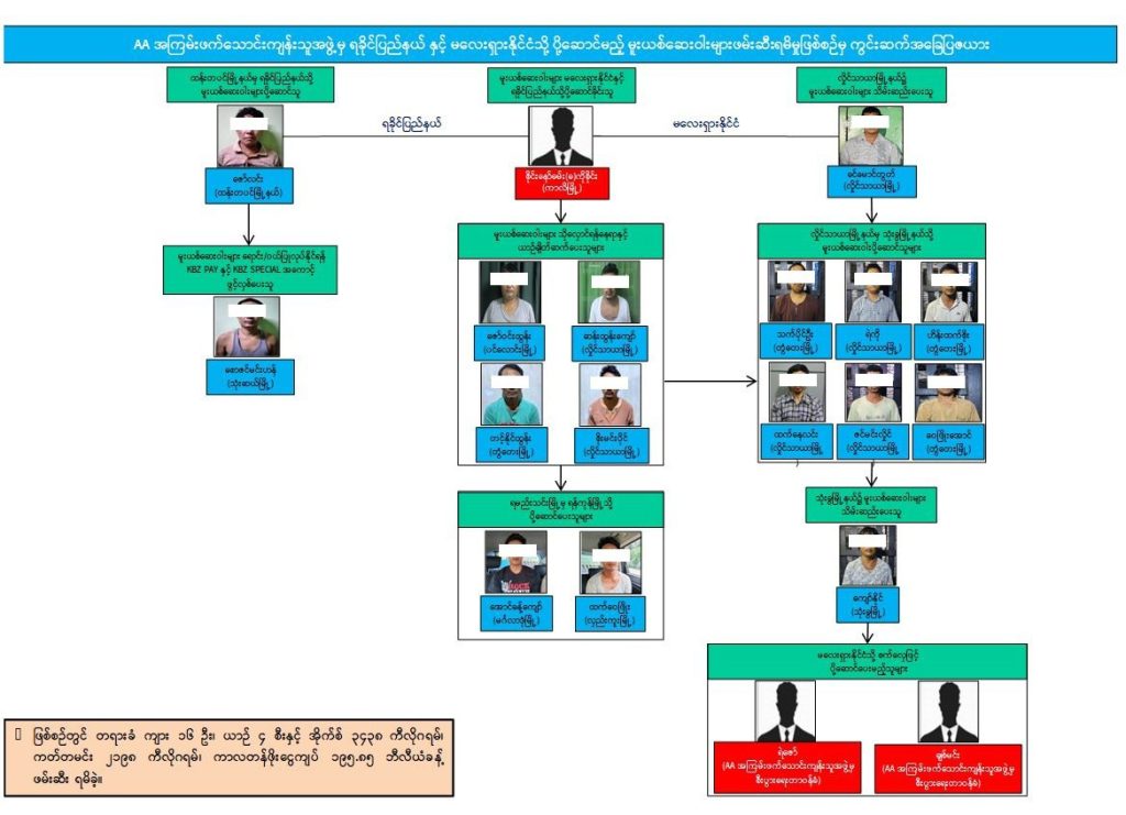 ◾️ ထွက်ဆိုချက်များအရ အဖမ်းခံရသူများသည် မူးယစ်ဆေးဝါး သယ်ဆောင်ရောင်းချခြင်းကို ပုဂ္ဂလိကစီးပွားရေးအဖြစ် လုပ်ဆောင်နေခြင်း မဟုတ်ဘဲ AA အဖွဲ့အတွက် တာဝန်ပေးအပ်ခံရသဖြင့် လုပ်ဆောင်နေခြင်းဖြစ်သည်ဟုပါ သိရှိရ