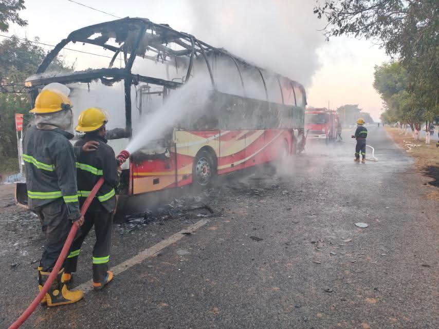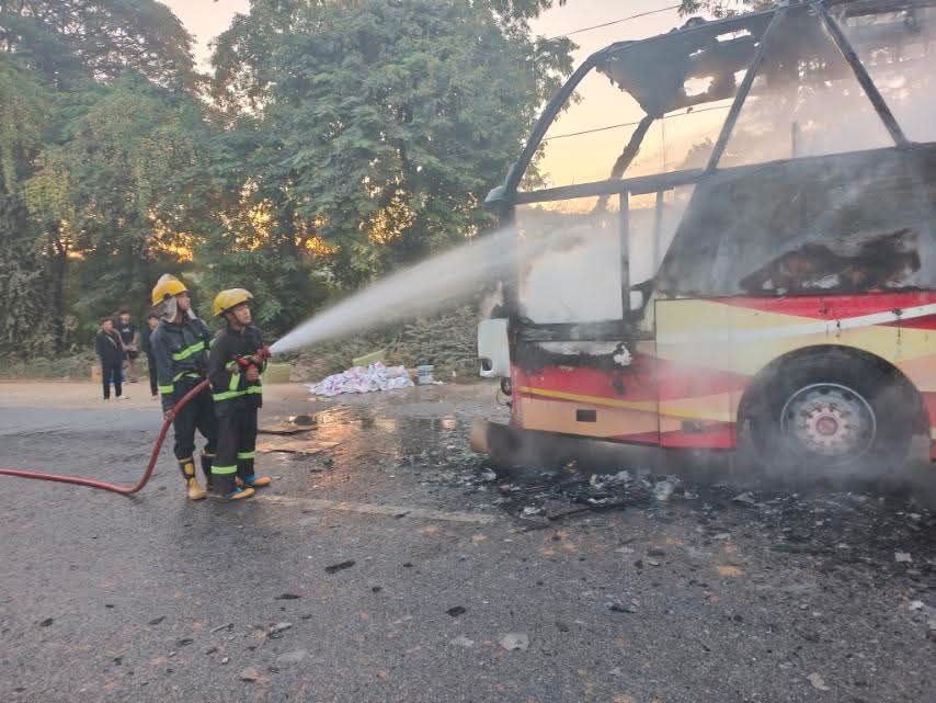 ဖြစ်စဉ်က ဒီကနေ့ ဒီဇင်ဘာ ၃၁ ရက်နေ့ မနက် ၆ နာရီ မိနစ် ၄၀ အချိန်ခန့်က မန္တလေးတိုင်းဒေသကြီး၊ စဉ့်ကိုင်မြို့နယ်၊ ကြေးနီကန်ကျေးရွာအနီး၊ ပလိပ်- စကားအင်းလမ်းပေါ်မှာ Express ယာဉ်တစ်စီး မီးလောင်မှုဖြစ်ပွားတဲ့ သတင်းရရှိလို့ စဉ့်ကိုင်မြို့နယ်မီးသတ်စခန်းမှ မီးငြှိမ်းသတ်ယာဉ်တစ်စီး၊ ပလိပ်နယ်မြေမီးသတ်စခန်းမှ မီးသတ်ရေသယ်ယာဉ်တစ်စီး၊ သန္ဓေမီးသတ်တပ်ဖွဲ့ဝင်တွေ၊ အရန်မီးသတ်တပ်ဖွဲ့ဝင်တွေနဲ့ ထွက်ခွာငြှိမ်းသတ်ခဲ့တယ်လို့ သိရပါတယ်။