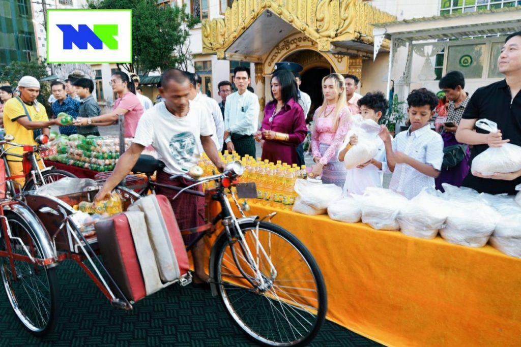 ဆက်လက်ပြီး နွမ်းပါးတဲ့ ဆိုက္ကားဆရာ အယောက် ၁၀၀ ကို ဆန်၊ ဆီ၊ ကြက်ဥ၊ ဂေါ်ဖီထုပ်၊ ပန်းပွင့်၊ ခြောက်ဆွဲခြောက်၊ ခရမ်းသီး၊ ဆီးသီး၊ ပြောင်းဖူး၊ မုန့်လာဥ၊ ဆား၊ ကြက်သွန်နီ၊ ဘူးသီး၊ ဖရုံသီး စတဲ့ အခြေခံစားကုန်တွေနဲ့ ငွေသားတချို့လှူဒါန်းခဲ့ကြပါတယ်။