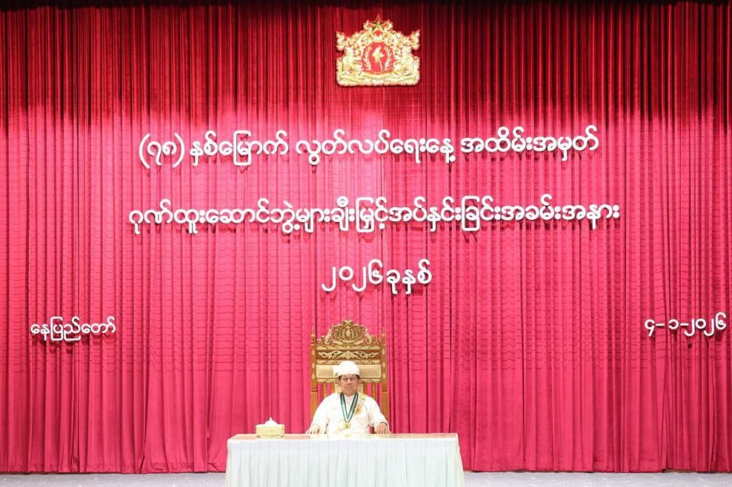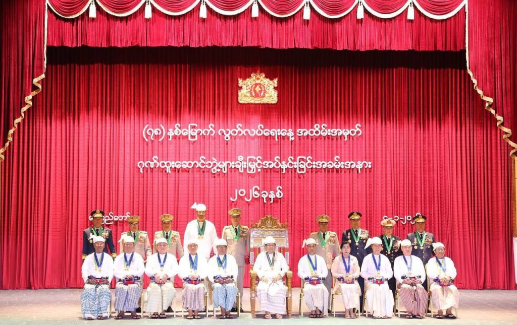 ယနေ့ ဘွဲ့ခံပုဂ္ဂိုလ်များထဲတွင်ပါသည့် နိုင်ငံတည်ငြိမ်အေးချမ်းရေးအတွက် သက်စွန့်ကြိုးပမ်းဆောင်ရွက်နေသူများ၊ အသိပညာ အတတ်ပညာနှင့် နိုင်ငံကို ဘက်ပေါင်းစုံက တိုးတက်အောင် ဆောင်ရွက်နေကြသူများရှိသလို ပြည်တွင်းပြည်ပ၏ အဖျက်အမှောင့် ပယောဂကို ယုံစားပြီး အသိပညာနည်းပါးသည့် ကိုယ်ကျိုးအတ္တသမားများ၊ နိုင်ငံတော်အပေါ် သစ္စာဖောက်ဖျက်သူများလည်း ရှိနေဆဲဖြစ်ကြောင်း ယာယီသမ္မတက ပြောကြားသည်။
