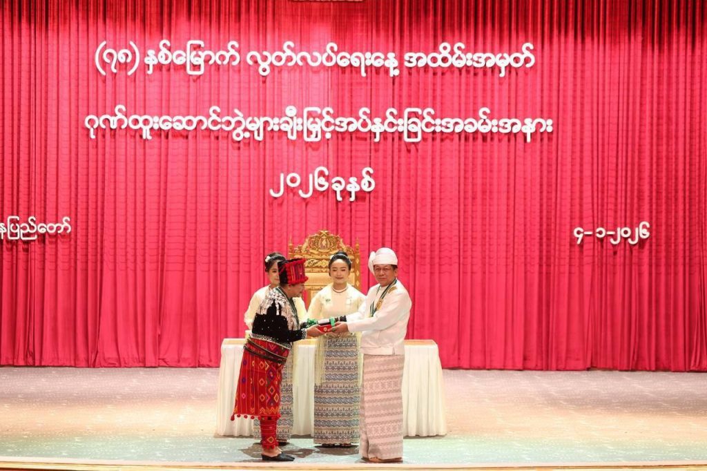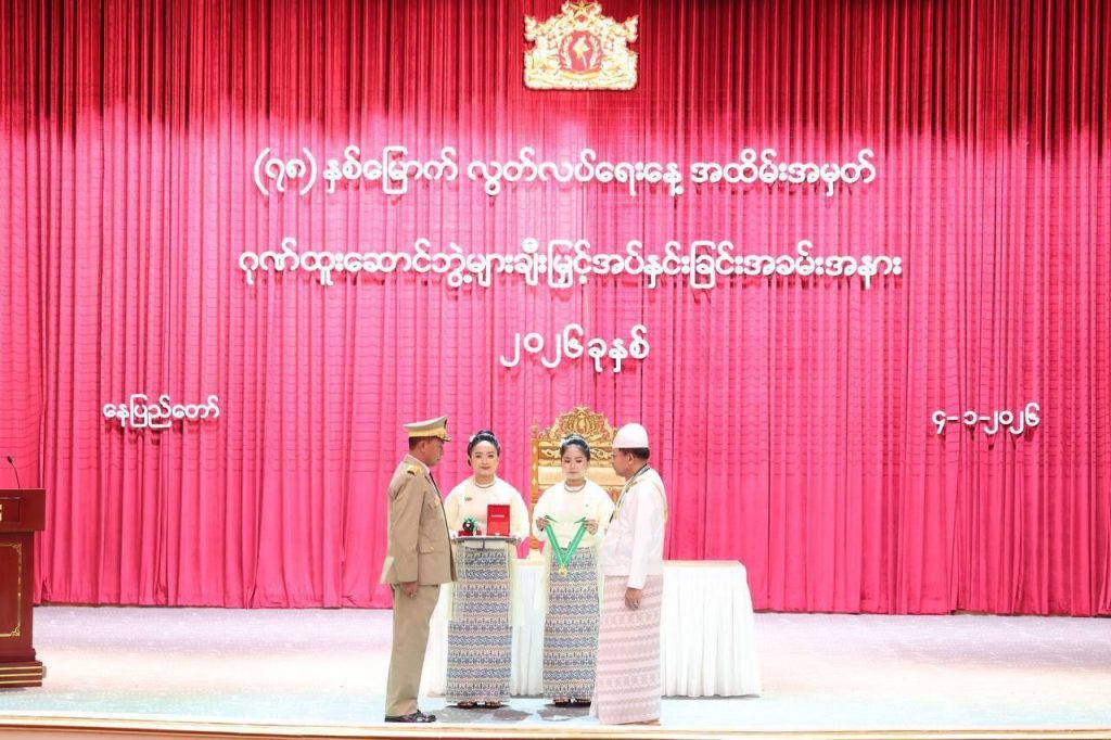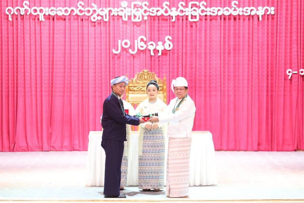 ထို့နောက် ယာယီသမ္မတက စည်သူသင်္ဂဟဘွဲ့များဖြစ်ကြသည့် စည်သူဘွဲ့ ၁၃ ဦး၊ တပ်မတော် စွမ်းရည်သတ္တိဘွဲ့များဖြစ်ကြသည့် သီဟသူရဘွဲ့ရရှိသူ ၂ ဦးနှင့် သူရဘွဲ့ရရှိသူ ၁ ဦး၊ သီရိပျံချီဘွဲ့ ၁၀ ဦး၊ ဇေယျကျော်ထင်ဘွဲ့ ၉ ဦး၊ ဝဏ္ဏကျော်ထင်ဘွဲ့ ၁၇ ဦး၊ အလင်္ကာကျော်စွာဘွဲ့ ၈ ဦး၊ သိပ္ပကျော်စွာဘွဲ့ ၁၁ ဦးတို့ကို ဂုဏ်ထူးဆောင်ဘွဲ့များ တစ်ဦးချင်း လက်ရောက်ချီးမြှင့်အပ်နှင်းသည်။