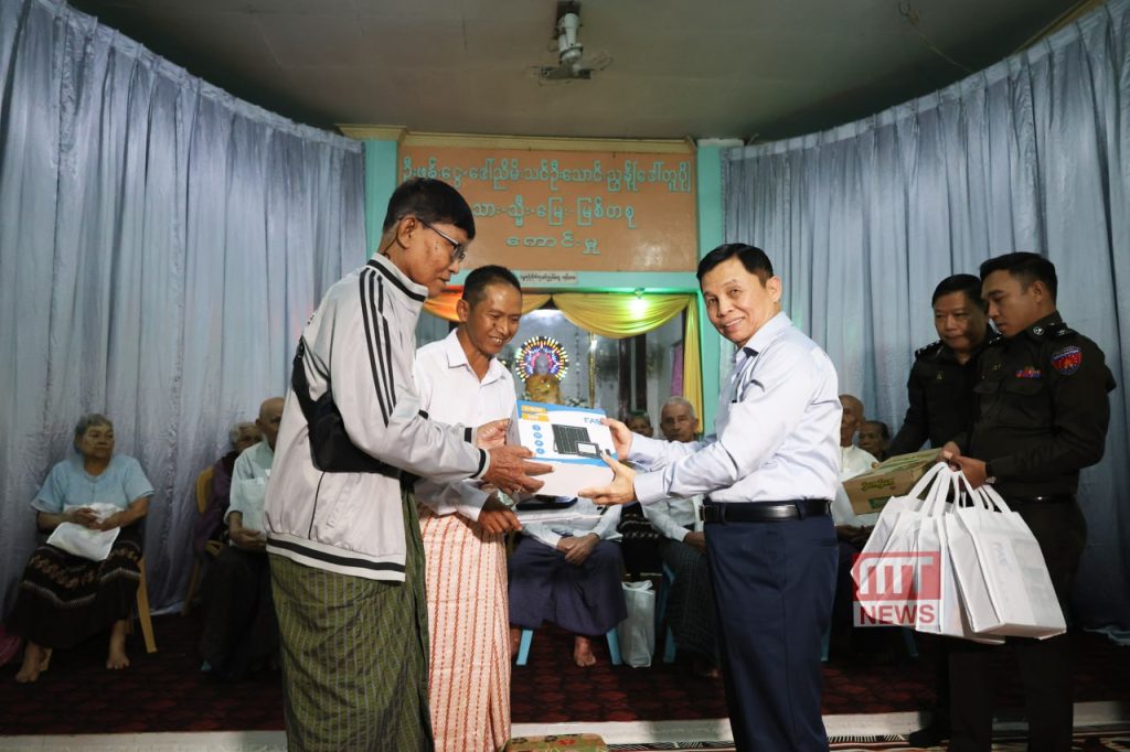 ထို့နောက် ပြည်ထောင်စုဝန်ကြီးသည် မော်လမြိုင်ကျွန်းမြို့နယ်၊ ချမ်းမြေ့ဘိုးဘွားရိပ်သာသို့သွားရောက်၍ ရိပ်သာမှ တာဝန်ရှိသူများနှင့် အဘိုးအဘွား (၂၀) ဦးအားတွေ့ဆုံကာ မကြာမီကျင်းပတော့မည့် အထွေထွေ ရွေးကောက်ပွဲတွင် အဘိုးအဘွားများ မဲပေးပိုင်ခွင့် မဆုံးရှုံးစေရေးနှင့် နိုင်ငံသားစိစစ်ရေးကတ်ပြား ကိုင်ဆောင်မဲပေးနိုင်ရေး၊ နိုင်ငံသားကတ်ပြား ပျောက်ဆုံး /ပျက်စီးပါက သက်ဆိုင်ရာ မြို့နယ်လဝကရုံးသို့ ပြန်လည်လျှောက်ထားရယူ ကိုင်ဆောင်နိုင်ရေး၊ အဘိုးအဘွားများ၏ နေထိုင်စားသောက်ရေးနှင့် ကျန်းမာရေးစောင့်ရှောက်မှု ဆိုင်ရာ ဆောင်ရွက်ပေးမှုအခြေအနေများနှင့် စပ်လျဉ်း၍ လိုက်လံကြည့်ရှုမေးမြန်းကာ အလှူငွေနှင့် စားသောက်ဖွယ်ရာများကို အဘိုးအဘွားတစ်ဦးချင်းထံ လိုက်လံဝေငှပေးအပ်လှူဒါန်းခံကြောင်း သိရသည်။
