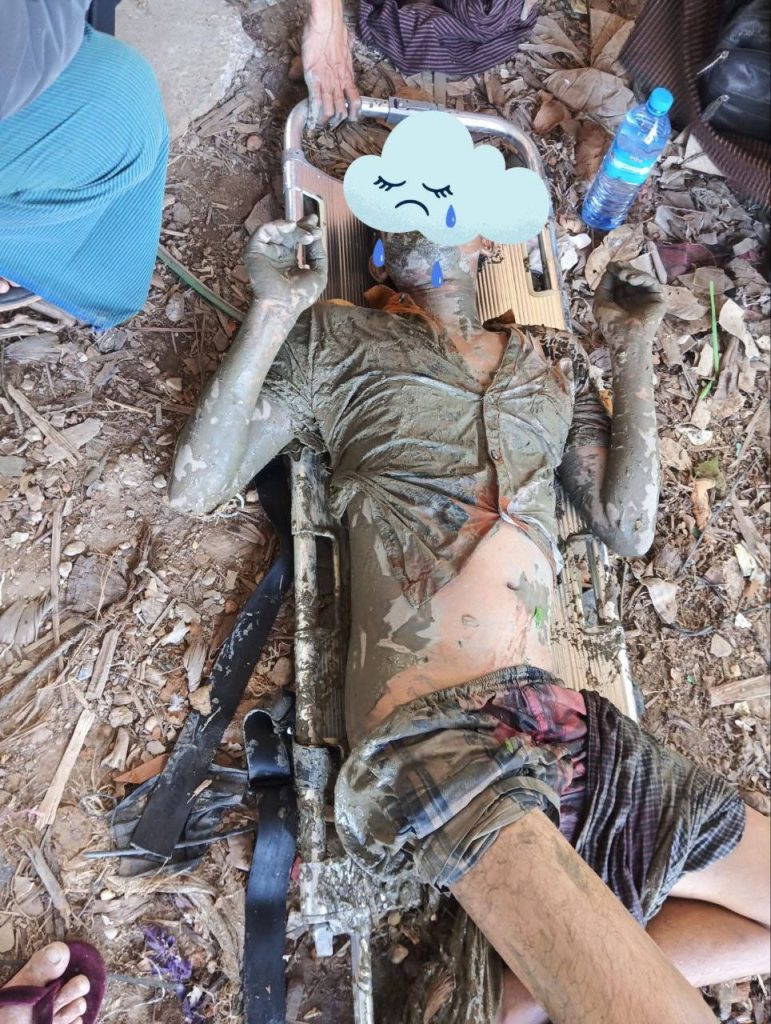 ရွှေရုပ်လွှာ လူမှုကူညီရေးအသင်းတာဝန်ရှိသူက “သူက ရေထဲပြုတ်ကျပြီးမှ ပြန်ပြီး ကမ်းပေါ် ဖက်တက်လာတာ။ ရေစစ်ချိန်ဆိုတော့ လတာပြင်က အကျယ်ကြီး။သူ့ကို ဝိုင်းဆွဲတင်ရတယ်။ အသက်တော့ ကယ်နိုင်တယ်။ ဒဏ်ရာတော့ရထားတာပေါ့။ ဆီးခုံမှာ ထိသွားတာက ဒဏ်ရာက လေး၊ ငါးလက်မ နီးပါးပဲ။ ကွဲသွားတာ” လို့ MT News က ဆက်သွယ်မေးမြန်းတာကို ပြန်လည်ဖြေကြားပါတယ်။