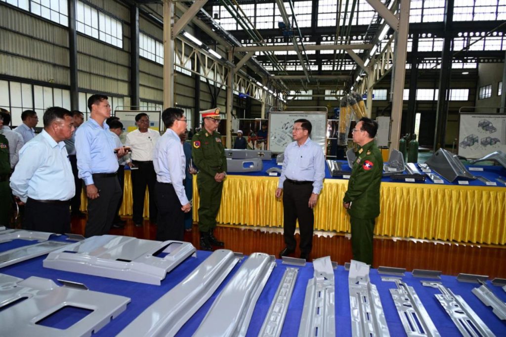 ထိုနောက် တပ်မတော်ကာကွယ်ရေးဦးစီးချုပ်သည် ညနေပိုင်းတွင် တပ်မတော် အကြီးစားစက်ရုံ(ထုံးဘို)သို့ ရောက်ရှိကြရာ စက်ရုံအစည်းအဝေးခန်းမတွင် စက်ရုံမှူးက စက်ရုံသမိုင်းအကျဉ်း၊ ဝန်ထမ်းများခန့်အပ်ထားရှိမှု၊ ရည်မှန်းချက်တာဝန်များ၊ ထုတ်လုပ် နိုင်မှုစွမ်းရည်များနှင့် တစ်နှစ်ထုတ်လုပ်နိုင်မှုအခြေအနေများ၊ လမ်းညွှန်မှာကြားချက်များအား လိုက်နာဆောင်ရွက်လျက်ရှိမှုအခြေအနေများ၊ မော်တော်ယာဉ်များအား ထုတ်လုပ်လျက်ရှိမှု၊ သုတေသနပြုဆောင်ရွက်လျက်ရှိမှုနှင့် စမ်းသပ်မောင်းနှင်ခြင်းများ ဆောင်ရွက်ပြီးစီးပါက တပ်မတော်နှင့် ဌာနဆိုင်ရာများသို့ ထုတ်ပေးလျက်ရှိမှုတိုနှင့် ဆက်လက် ဆောင်ရွက်သွားမည့်အခြေအနေများကို ရှင်းလင်းတင်ပြသည်။