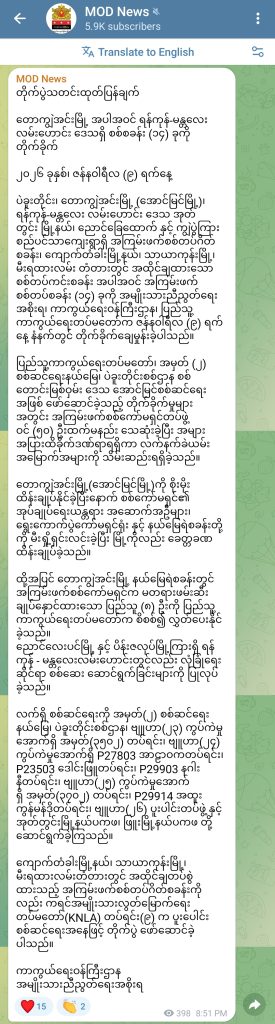 ဒါ့အပြင် တောကျွဲအင်းမြို့ နယ်မြေရဲစခန်းမှာ ဖမ်းဆီးထားတဲ့ တရားခံ ၈ ဦးကိုလည်း PDF တွေက ပြန်လွတ်ပေးခဲ့တဲ့အပြင် ညောင်လေးပင်မြို့နဲ့ ပိန်းဇလုပ်မြို့ကြား ရန်ကုန် – မန္တလေးလမ်းဟောင်းမှာလည်း စစ်ဆေး ဆောင်ရွက်မှု ပြုလုပ်ခဲ့တယ် ပြောပါတယ်။