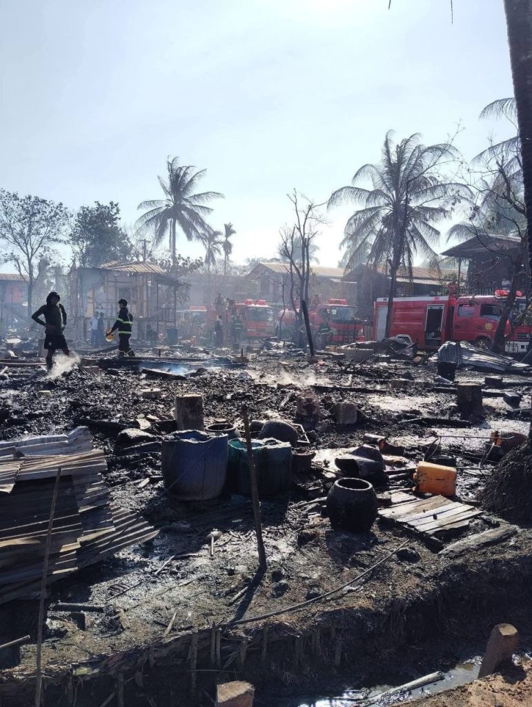“တစ်ရွာလုံးမှာ အိမ်ခြေနည်းနည်းပဲ ကျန်တော့တယ်။မီးလောင်လို့ဘာမှမရလိုက်တဲ့သူတွေလည်း ရှိတယ်။အကူအညီတွေလည်း လိုအပ်နေတယ်”ဟု ဒေသခံအခြေစိုက်လူမှုကူညီရေးအဖွဲ့မှအဖွဲ့ဝင်တစ်ဦးက ပြောသည်။