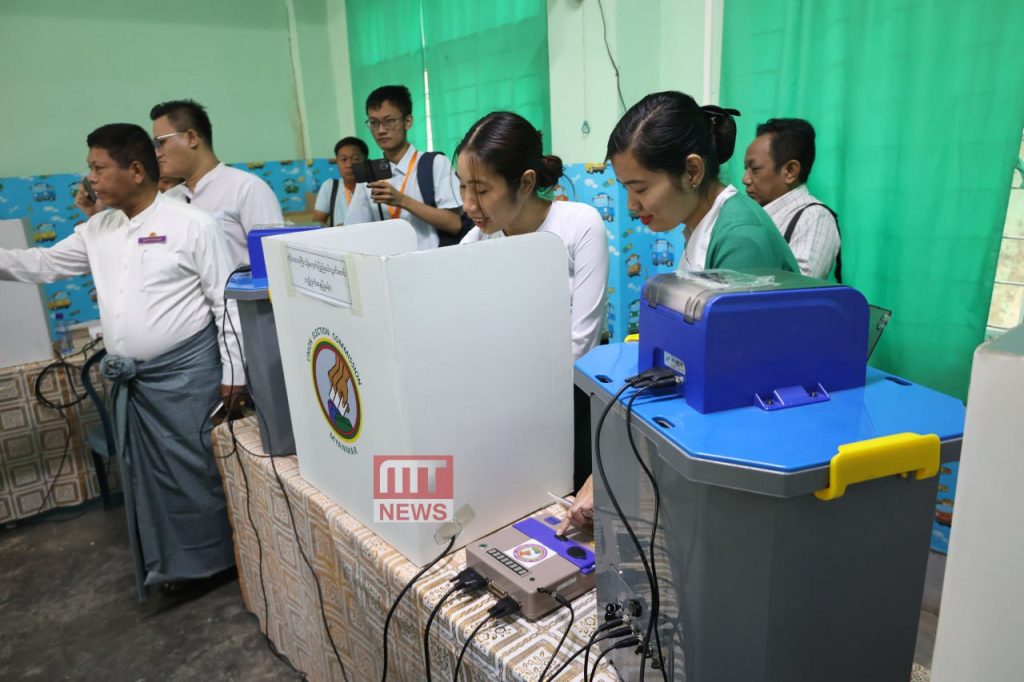 အဆိုပါ အီလက်ထရောနစ်မဲပေးစက်များဖြင့် စမ်းသပ်မဲပေးခြင်းကို အသိသက်သေများရှေ့တွင် မဲရုံမှူးများက စနစ်ကျတပ်ဆင် ဆောင်ရွက်ခဲ့ပြီး တာဝန်ရှိသူများကလည်း လေ့လာကြည့်ရှုခဲ့ကြသည်။