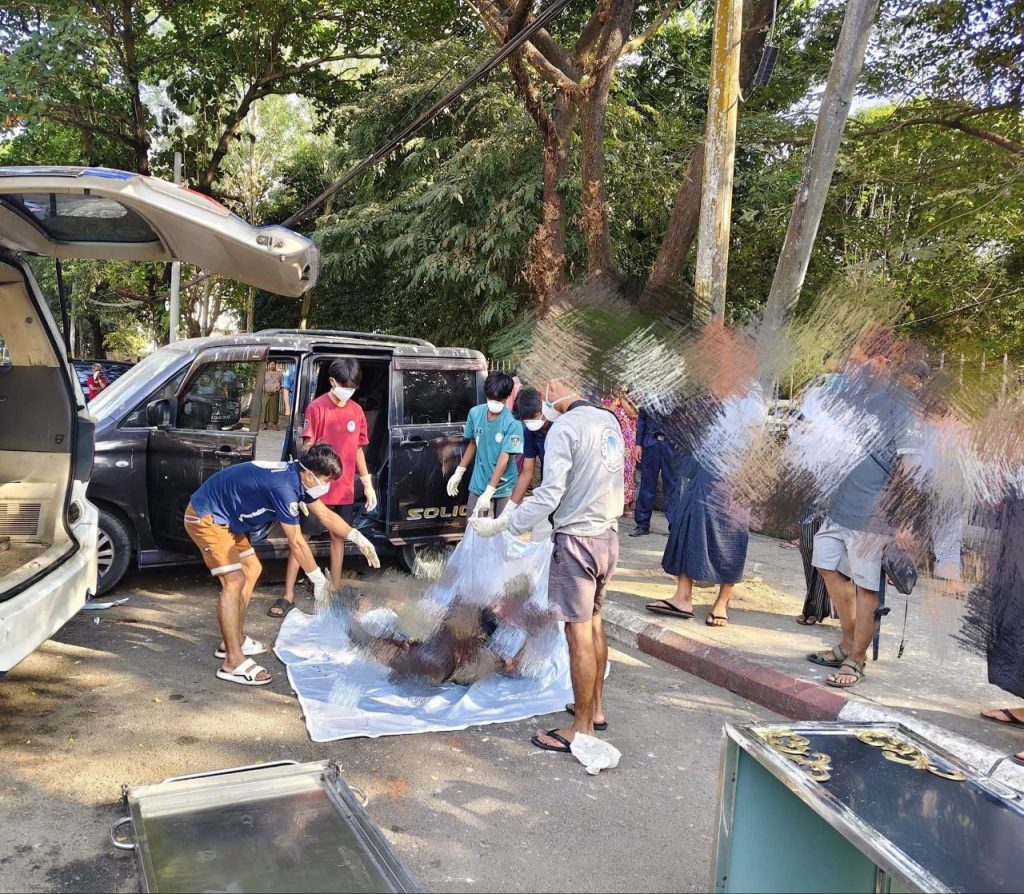 အနီးအနားရှိဒေသခံတချို့ရဲ့ ပြောပြချက်အရ အဆိုပါကား အဲ့ဒီနားမှာ ရပ်ထားတာ ရက်အတန်ကြာနေပြီ ဖြစ်တယ်လို့လည်း သိရှိရပြီး သေဆုံးသူရဲ့ ရုပ်အလောင်းကို စနစ်တကျ ထုပ်ပိုးကာ ရောင်စဉ်မဲ့ လူမှုကူညီရေး အသင်းယာဉ်နဲ့ ရန်ကုန်ဆေးရုံကြီး ရင်ခွဲရုံဆီ အခမဲ့ပို့ဆောင်ပေးခဲ့တယ်လို့ သိရပါတယ်။ ဓာတ်ပုံ – ရောင်စဥ်မဲ့ လူမှုကူညီရေးအသင်း
