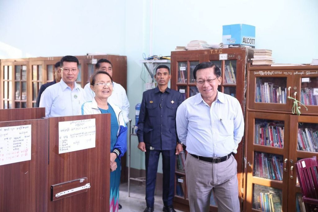 ထို့နောက် ယာယီသမ္မတသည် ပုသိမ်မြို့ရှိ ပညာရေးဒီဂရီကောလိပ်သို့ သွားရောက်၍ ကောလိပ်ရှိ ပညာရတနာခန်းမနှင့် ကောလိပ်အတွင်း လှည့်လည်ကြည့်ရှုစစ်ဆေးခဲ့ပြီး ခန်းမအား အဆင့်မြှင့်တင် ဆောင်ရွက်သွားရန်လိုကြောင်းနှင့် အဆောက်အဦများကိုလည်း လိုအပ်သည့် ပြုပြင်မွမ်းမံခြင်းများ ဆောင်ရွက်၍ အကျိုးရှိရှိ အသုံးချသွားကြရန် မှာကြားသည်။