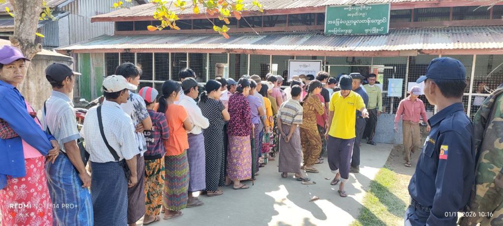 ပုံစာ။ ဒုတိယအကြိမ်ရွေးကောက်ပွဲနေ့က မဲပေးနေကြသော ပြည်သူများပုံရိပ်။