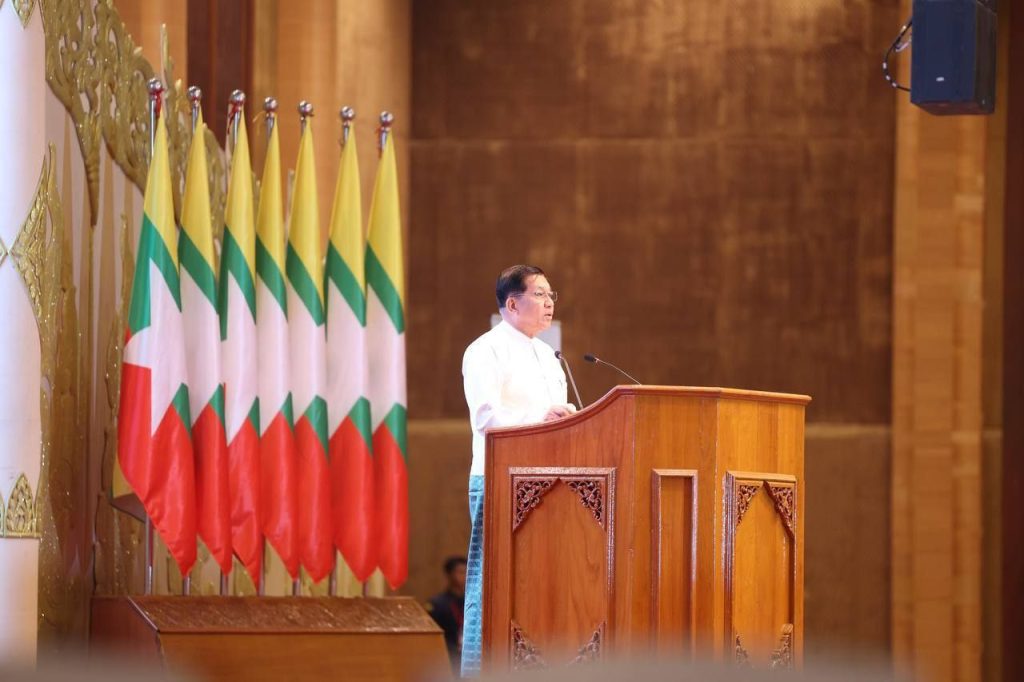 ၂၀၂၀ ပြည့်နှစ်ရွေးကောက်ပွဲတွင် ဆိုးဆိုးရွားရွားပြုလုပ်ခဲ့သည့် မဲမသမာမှုများကြောင့် တပ်မတော်မှ အမျိုးသားနိုင်ငံရေးတာဝန်များကို ဥပဒေနှင့်အညီ ထိန်းသိမ်းကာကွယ် ထမ်းဆောင်ခဲ့ရကြောင်း၊ အဆိုပါအဖြစ်မှန်ကို ဖုံးကွယ်ပြီး အကြမ်းဖက် NUG၊ CRPH အဖွဲ့များက တပ်မတော်အနေဖြင့် ဒီမိုကရေစီနောက်ပြန်ဆွဲ လုပ်ဆောင်နေသယောင် ဝါဒမှိုင်းတိုက်ပြီး လူငယ်၊ လူရွယ်များကို လွဲမှားသည့်မျှော်လင့်ချက်များနှင့်အတူ အကြမ်းဖက်လက်နက်ကိုင်လမ်းစဉ်ဆီ တွန်းပို့ခဲ့ကြကြောင်း ယာယီသမ္မတက ပြောကြားသည်။