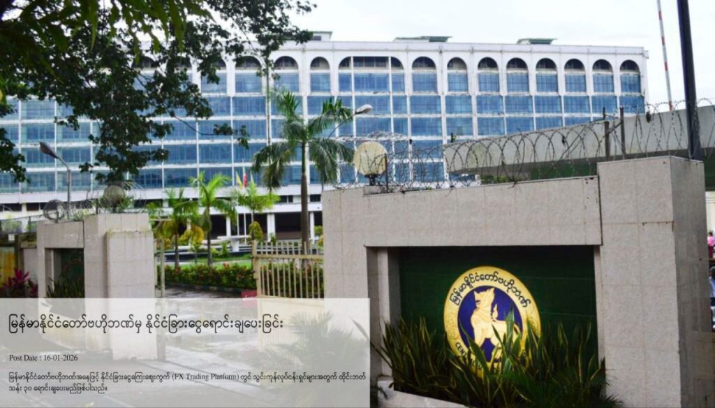 ပြင်ပဈေးကွက်တွင် ဒေါ်လာဈေးနှုန်း တစ်ဒေါ်လာ ကျပ် ၄,၁၀၀ ဝန်းကျင်၊ ထိုင်းဘတ် ၁၃၀ ကျပ်နှင့် တရုတ်ယွမ် ၅၈၉ ကျပ် ဖြစ်ပေါ်လျက်ရှိသည်။ သို့သော် ဗဟိုဘဏ်အနေဖြင့် Online Trading Platform မှတစ်ဆင့် နိုင်ငံခြားငွေများ ရောင်းချပေးရာတွင် တစ်ဒေါ်လာ ၃,၆၅၀ ကျပ်၊ ထိုင်းဘတ် ၁၂၅ ကျပ်နှင့် တရုတ်ယွမ် ၅၅၇ ကျပ်ဖြင့် ရောင်းချပေးလျက်ရှိသည်။